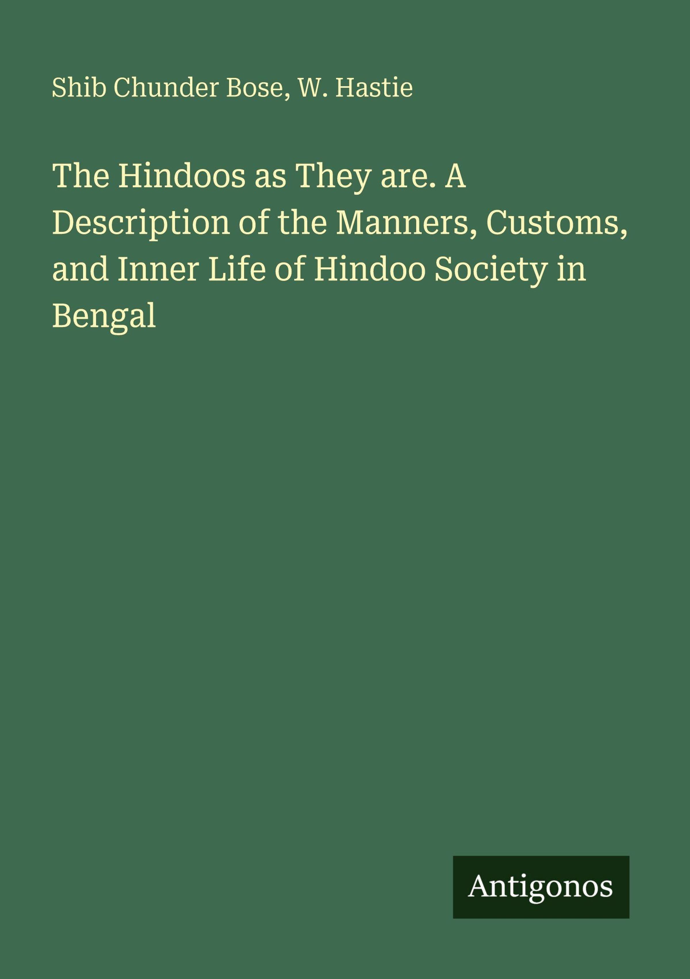 The Hindoos as They are. A Description of the Manners, Customs, and Inner Life of Hindoo Society in Bengal