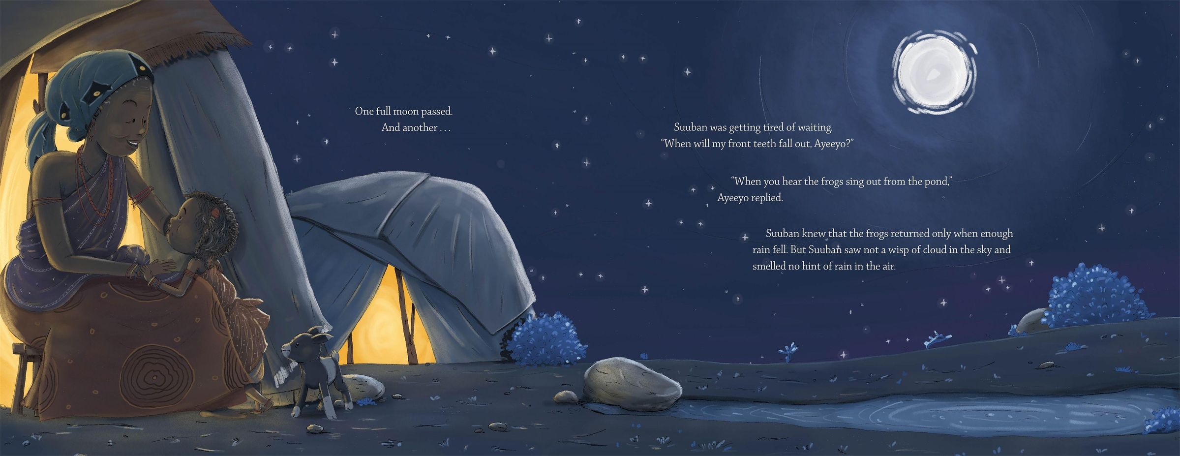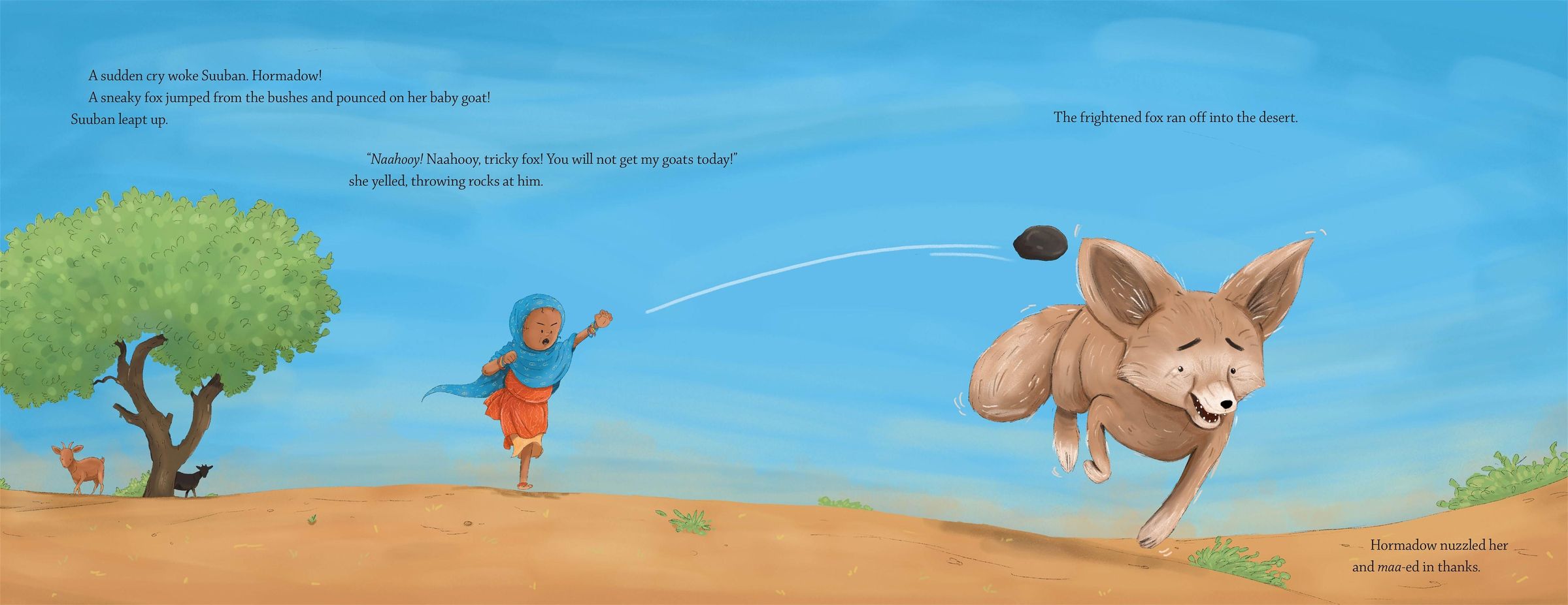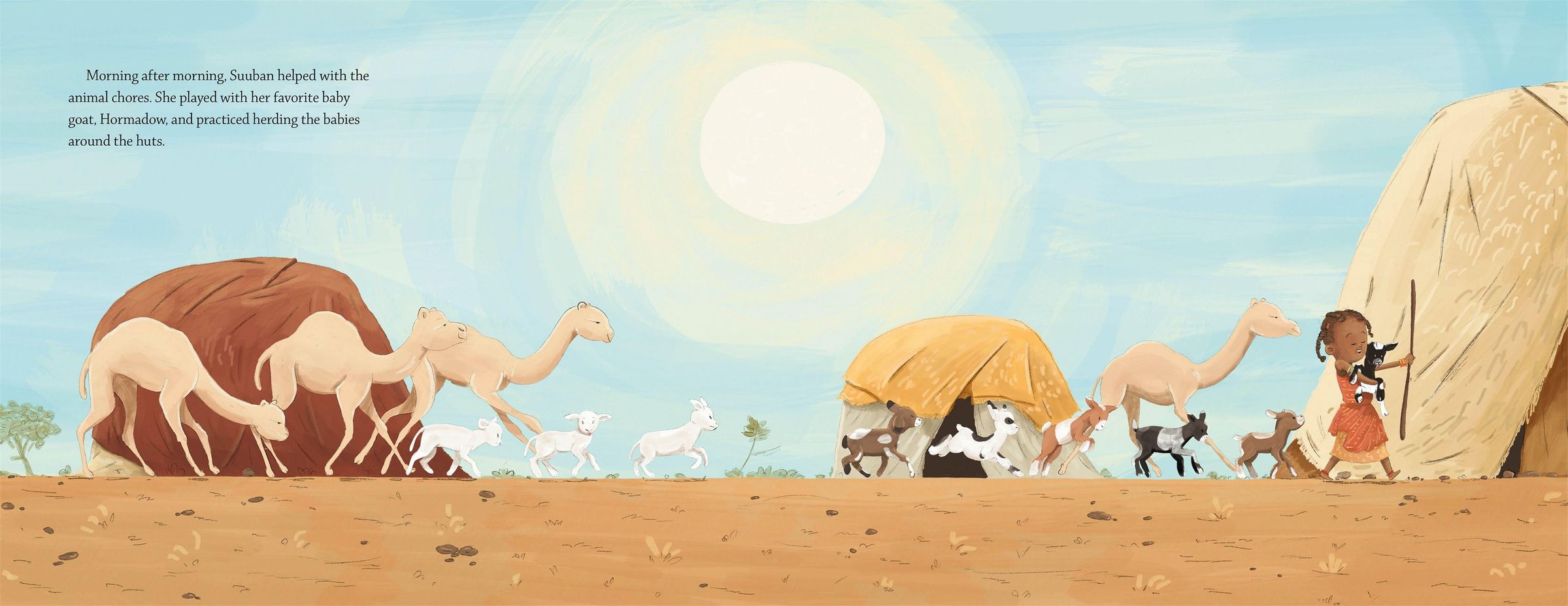 Patiently, Suuban waits, and waits...until she can't wait anymore! After some creative thinking and a head bump from a goat to help loosen her front tooth, Suuban is ready to prove she can herd the animals across the desert safely. But with sneaky foxes prowling about, will Suuban learn the resilience she needs to protect her goats?
