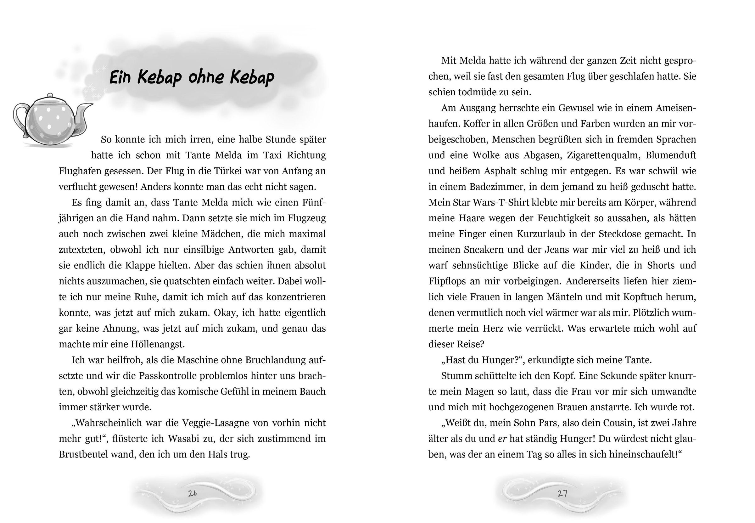 Eigentlich wollte ich in den Ferien ein paar chillige Wochen mit meinem Chamäleon Wasabi und Paps beim Schnorcheln verbringen, aber stattdessen werde ich zu meiner mir bis dahin völlig unbekannten Tante Melda nach Amintos verfrachtet! Und das Einzige, was ich über Amintos weiß, ist, dass meine Mutter dort verschwunden ist. Klar, dass ich da nicht hinwill, oder? Aber da wusste ich auch noch nicht, dass es in Amintos nur so wimmelt von fliegenden Teppichen, Tempelagenten und glühenden Schwertern - ziemlich abgefahrene Sache! Wenn da nur nicht plötzlich diese gruseligen Monster hinter mir her wären ...
