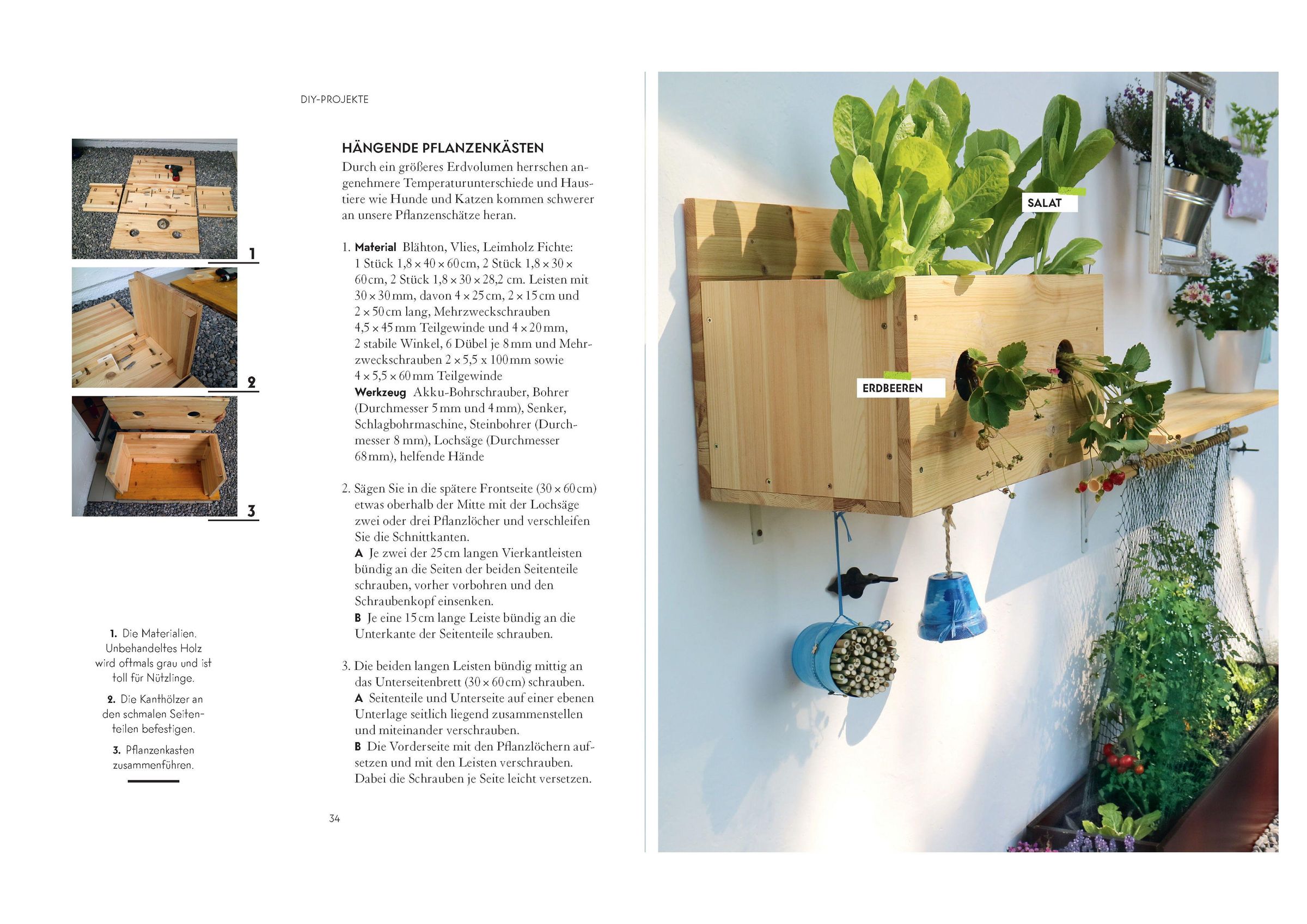 Wer nur wenig Platz für den eigenen Gemüseanbau hat, kann dennoch mit einfachen Mitteln, etwas Handwerkszeug und Kreativität gesunde Leckereien pflanzen. Die Devise lautet: die Höhe nutzen, ob im kleinen Garten oder auf dem Balkon. Die Autoren zeigen anhand von 20 DIY-Projekten, wie das mit Paletten, Obstkisten, Netzen, Beuteln geht und stellen das geeignete Gemüse für die vertikale Vielfalt vor. Es ist verblüffend, wie einfach Naschbar, Kartoffelturm, Gemüsespirale, Hängekorb und Geländertasche entstehen und klasse aussehen.