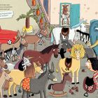 Auf diesem Bauernhof geht es drunter und drüber: Im Gemüsebeet wachsen Fußbälle , eine ZebräKuh plaudert mit einem Pinguin, beim Ponyreiten machen heute Einhörner mit, während eine Giraffe vergeblich nach einem passenden Sattel sucht. Da lachen ja wirklich die Hühner! Und mittendrin steht eine echte Kuh mit Brille ...