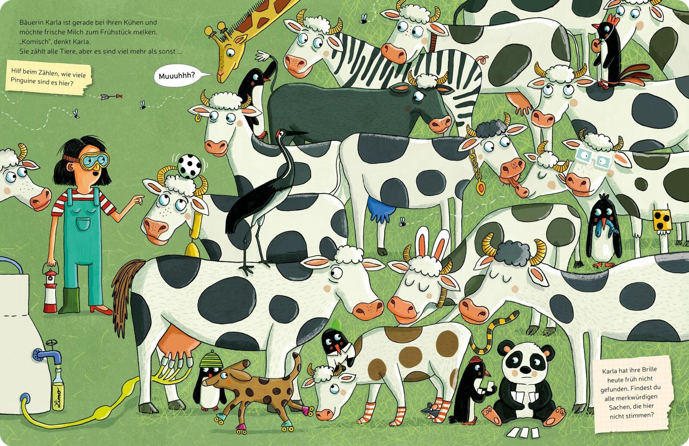 Was macht das Zebra im Kuhstall? Auf jeder Seite wimmelt es vor Fehlern und verrückten Ideen - für kleine Spürnasen ab 3 Jahren