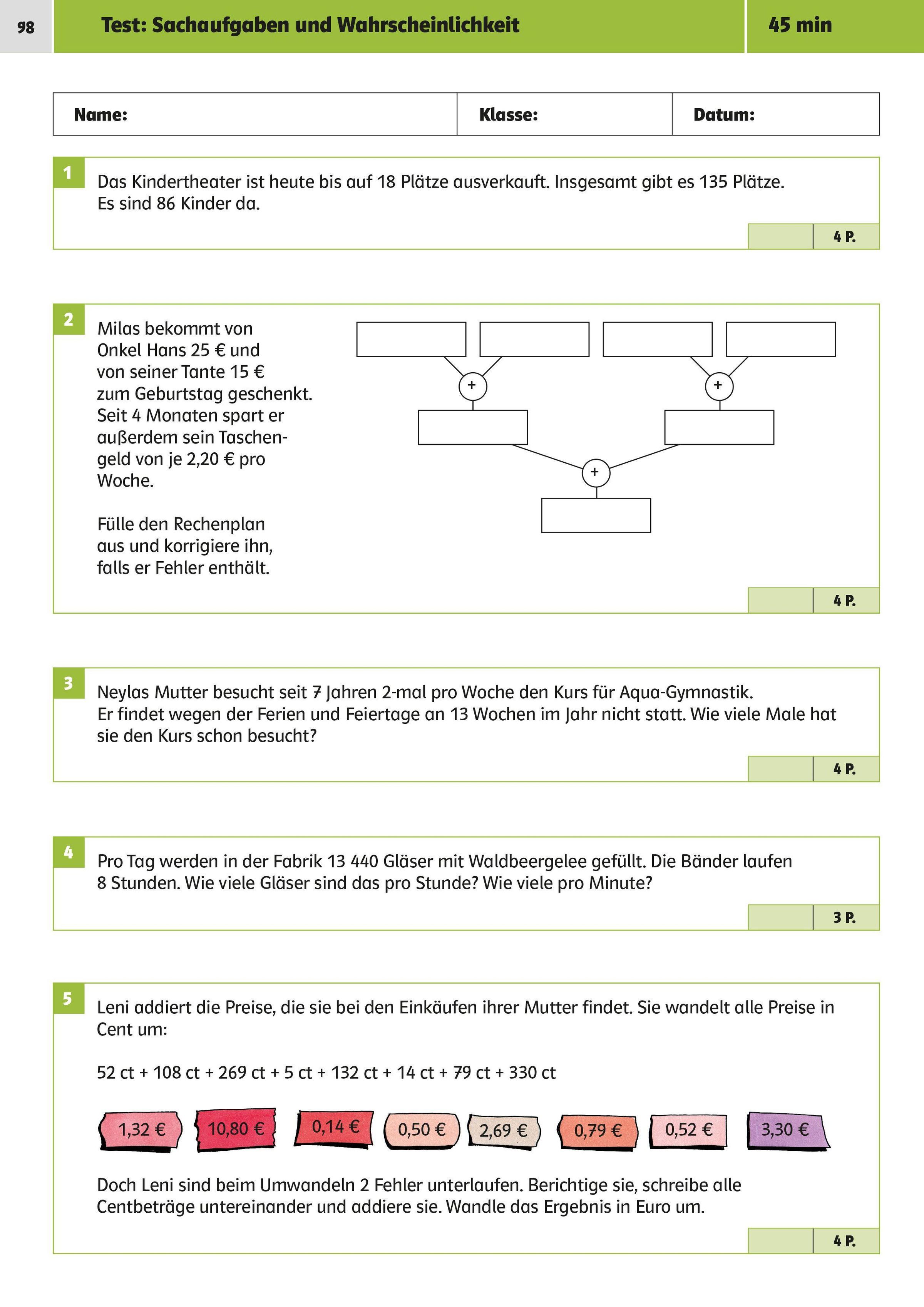 Auf jeder Doppelseite gibt es spezielle Übungen mit Zeitangaben, die künftige Gymnasiasten können müssen.