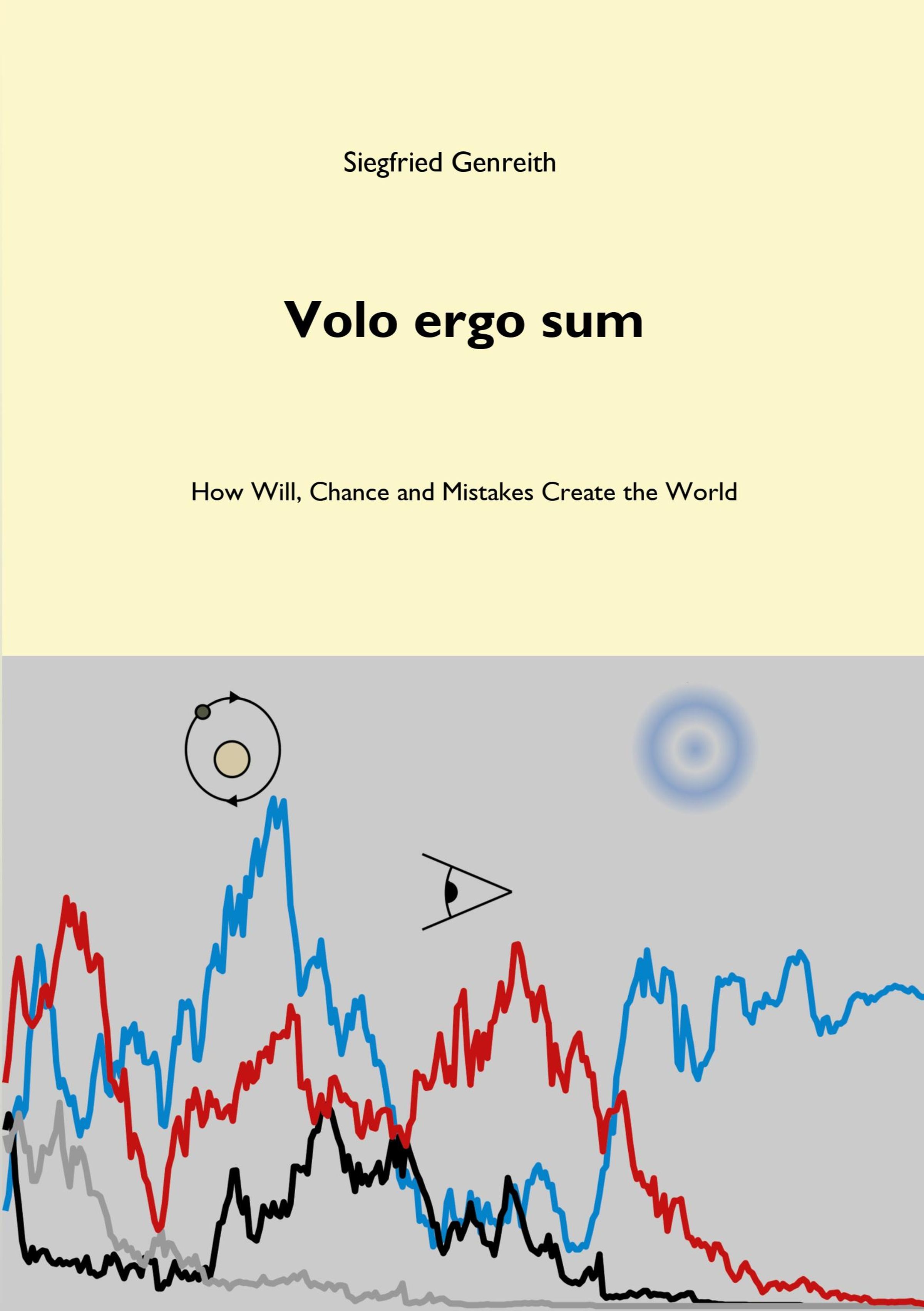 Der Text oben lautet: "Volo ergo sum". Unten sind bunte Schaubilder und Diagramme mit Symbolen., Buch