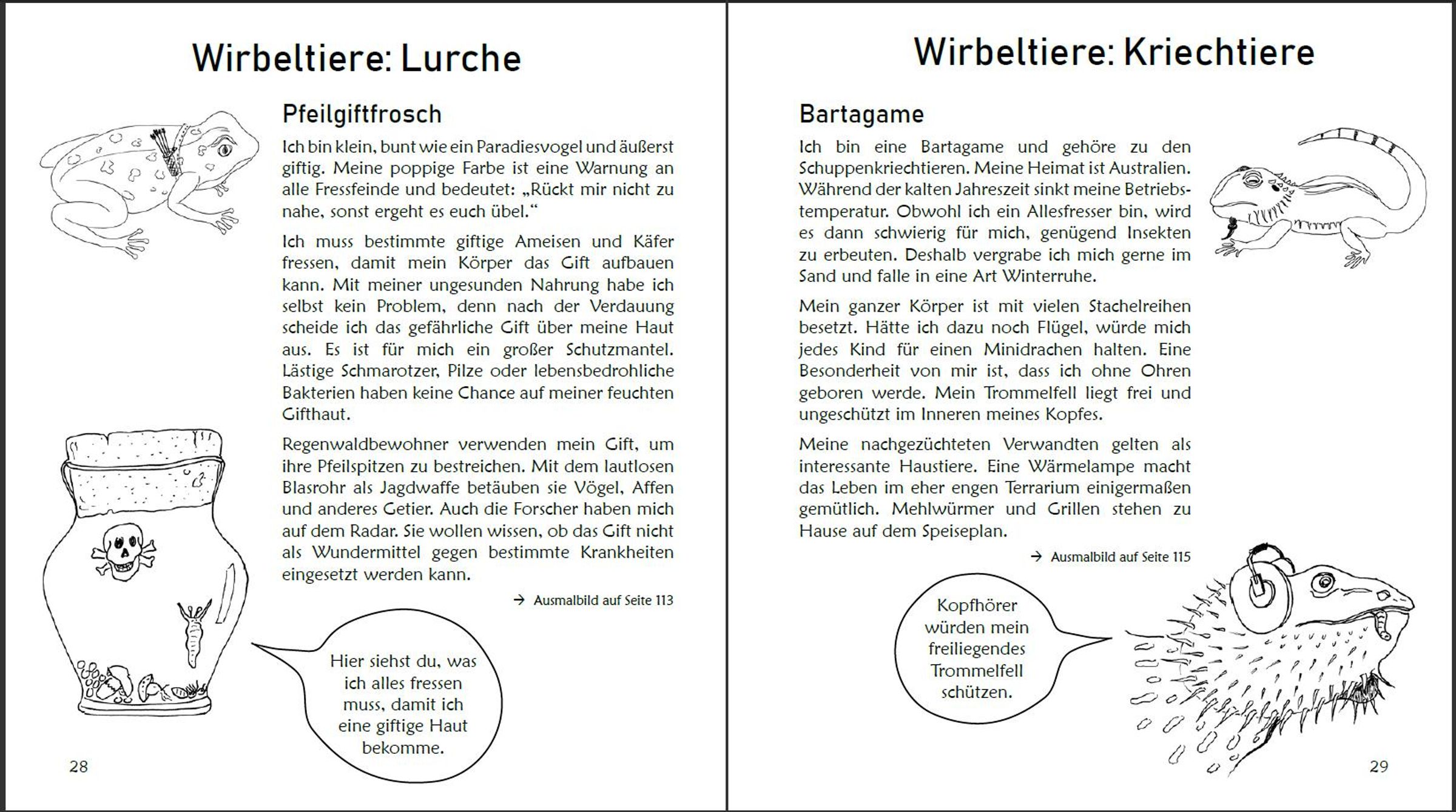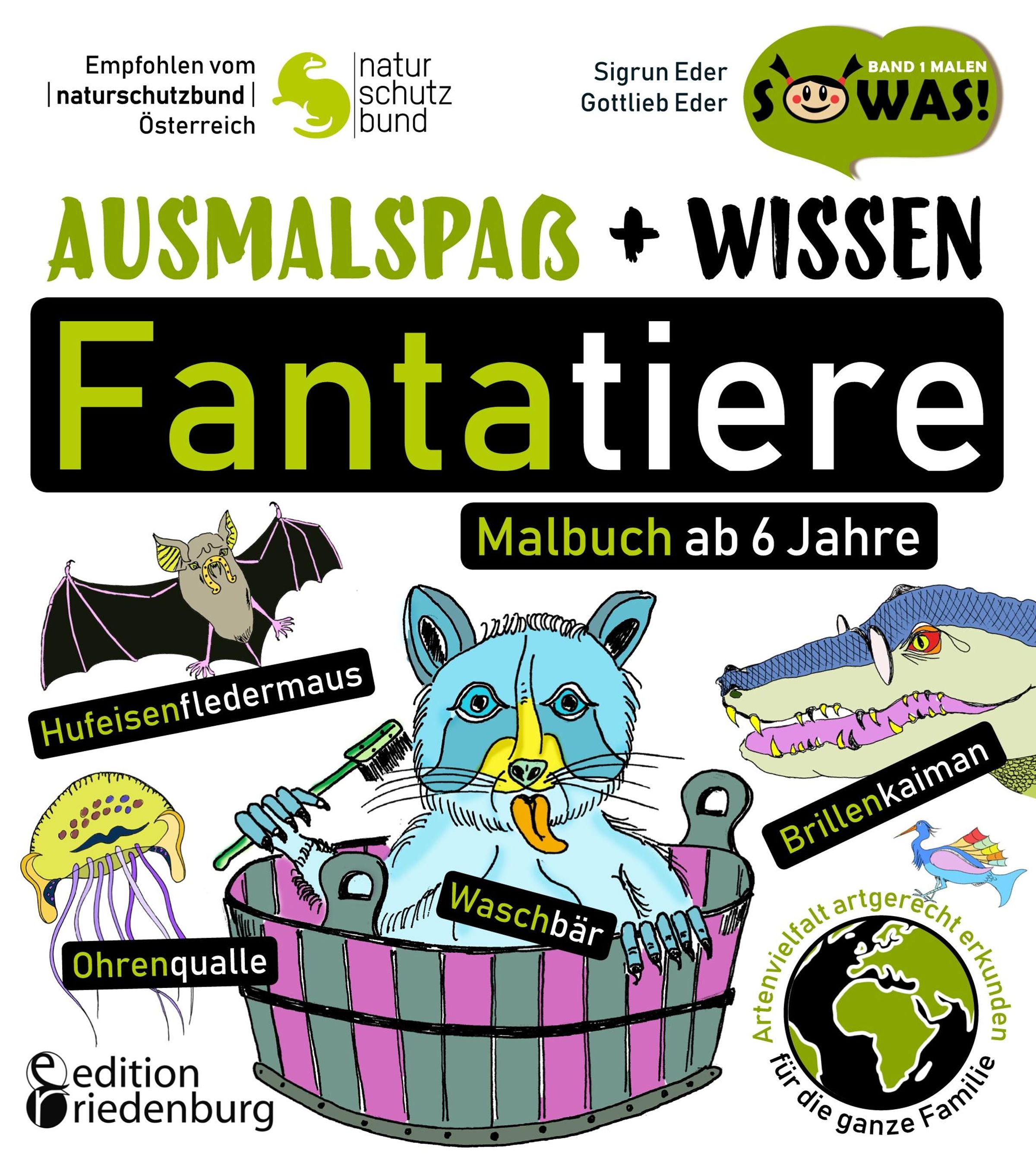 Wenn die Tiere auf einmal so aussehen, wie sie heißen, kommen echt fantastische Fantatiere dabei heraus! Mach dich in diesem absolut außergewöhnlichen Malbuch deshalb auf eine besondere Artenvielfalt gefasst. Kurze, bebilderte Steckbriefe verraten dir das Wichtigste in Kürze. So wirst du zum Experten für Aussehen, Lebensraum, Lieblingsfutter, Freunde und Feinde der Fantatiere. Freu dich darauf, was dir Waschbär, Brillenkaiman, Blindschleiche, Ohrenqualle, Hufeisenfledermaus, Fischreiher, Ringelrobbe, Gänseblümchengans und über 50 weitere Weltbewohner über sich erzählen. Natürlich gibt es alle Malvorlagen in groß mit leerer Rückseite. So kannst du deine Fantatiere nach dem Ausmalen auch ausschneiden. Vielleicht möchtest du daraus hohe Tiertürme ähnlich den Bremer Stadtmusikanten basteln. Auf Karton geklebt lassen sich die Fantatiere sogar verschenken. Fang am besten gleich damit an, dem Waschbären und seinen Malbuchfreunden deine Lieblingsfarben zu verpassen! Band 1 MALEN der SOWAS!-Kindersachbuchreihe - Artenvielfalt artgerecht erkunden für die ganze Familie - Empfohlen vom Naturschutzbund Österreich Über die Buchreihe: SOWAS!-Titel sind in einfacher Sprache verfasst und erweitern den kindlichen Wortschatz. Unsere handlichen Sachbücher gibt es seit 2008. Sie genießen das Vertrauen von Tausenden Anwendern in der professionellen Praxis und zu Hause. Die SOWAS!-Reihe wird laufend erweitert. Komplettes Programm unter www. sowas-buch. de Verlag edition riedenburg, Salzburg * www. editionriedenburg. at *