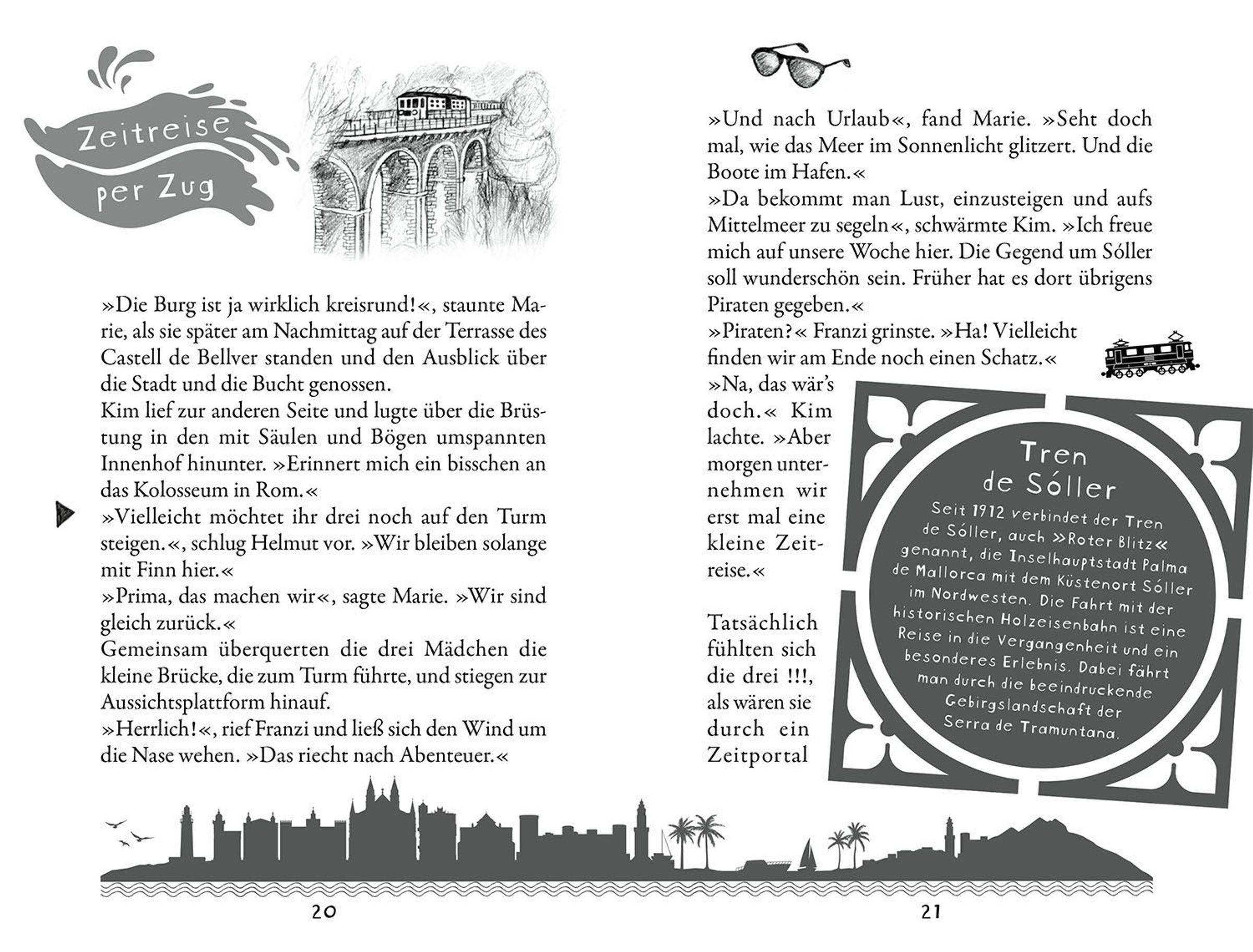 Mallorca, Sonne - und ein neuer Fall: Kim und Franzi begleiten Marie und ihre Familie zu Dreharbeiten nach Sóller. Das Ferienhaus an der Küste scheint der perfekte Ort zum Entspannen, doch kaum haben sie ihre Koffer ausgepackt, häufen sich in der Umgebung geheimnisvolle Einbrüche - und das gerade jetzt, wo im Ort das große Piratenfest stattfindet. Wer steckt dahinter? Ein gewöhnlicher Dieb oder etwa der Geist einer Piratin, die einst einen Schatz hier versteckt haben soll? Zusammen mit einem jungen Touristenführer begeben sich die drei !!! auf Spurensuche, entdecken verborgene Winkel der Insel und lassen sich von alten Geschichten und geheimnisvollen Hinweisen leiten. Zwischen Olivenhainen, Festtrubel und unerwarteten Begegnungen erleben sie ein Mallorca, das voller Rätsel steckt - und in dem Mut, Freundschaft und Spürsinn gefragt sind.