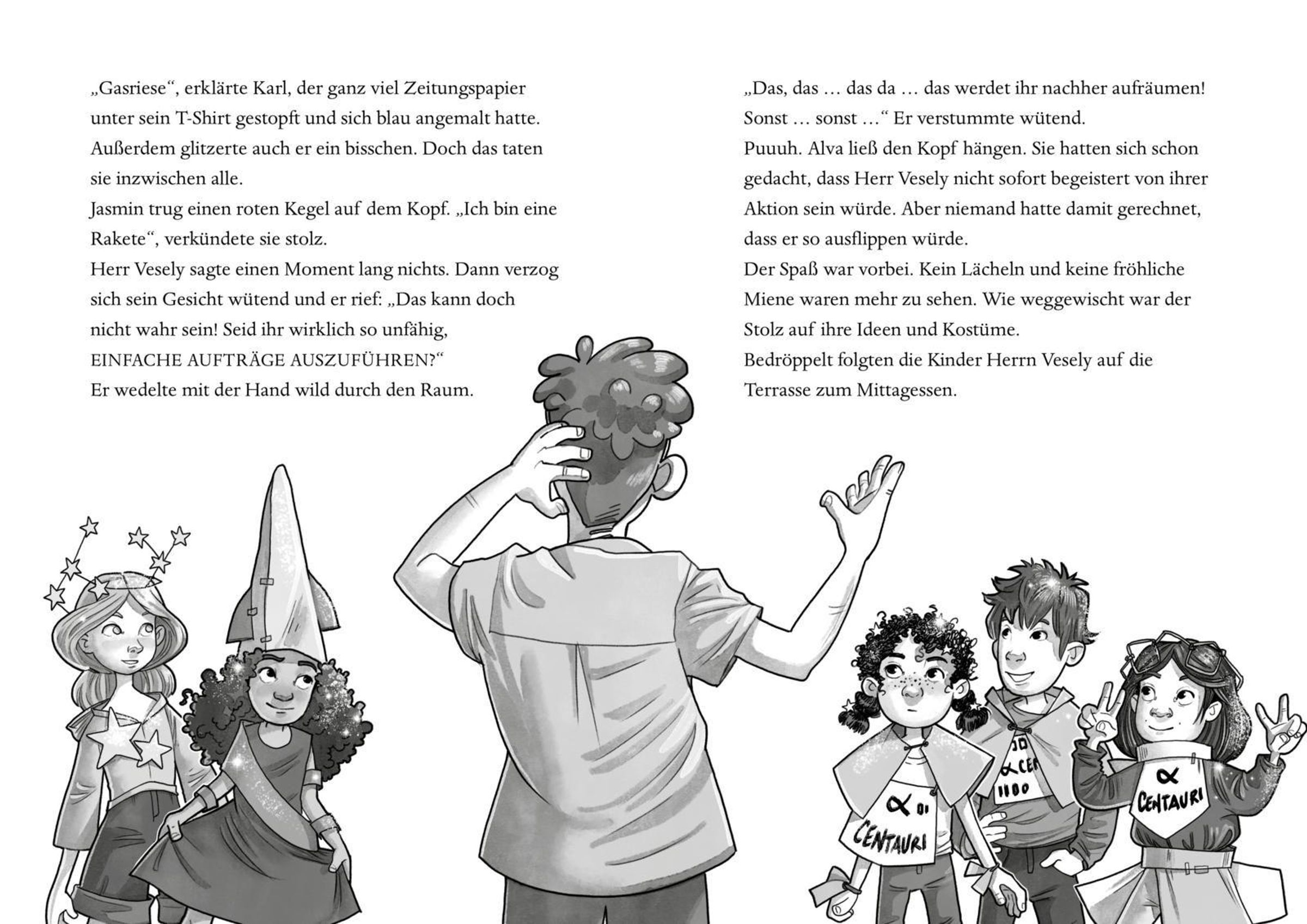 Auf zur Sternwarte! Im Raketenauto geht es für Alva und Elwin los ins Abenteuer. Wie aufregend! Doch Alva wäre lieber mit Mala oder Till auf Mission gegangen, und außerdem stellt sich das Ferienprogramm als ziemlich öde heraus. Aus Langeweile verwandelt sich Elwin vor allen Kindern in ein Alien - dabei sollen ihre Talente ja geheim bleiben! Doch als das wichtige Experiment der netten Wissenschaftlerin Tanja schiefgeht, müssen Alva und Elwin zusammenhalten. Können sie das Ferienprogramm und den Ruf der Sternwarte retten? Geheime Bienen-Spione und ein großer Alien-Auftritt: Ein Abenteuer über ganz besondere Talente, echte Freundschaft und Alienschleim, mit kurzen Kapiteln und vielen Bildern für Jungen und Mädchen ab 8. Kein Vorwissen nötig!