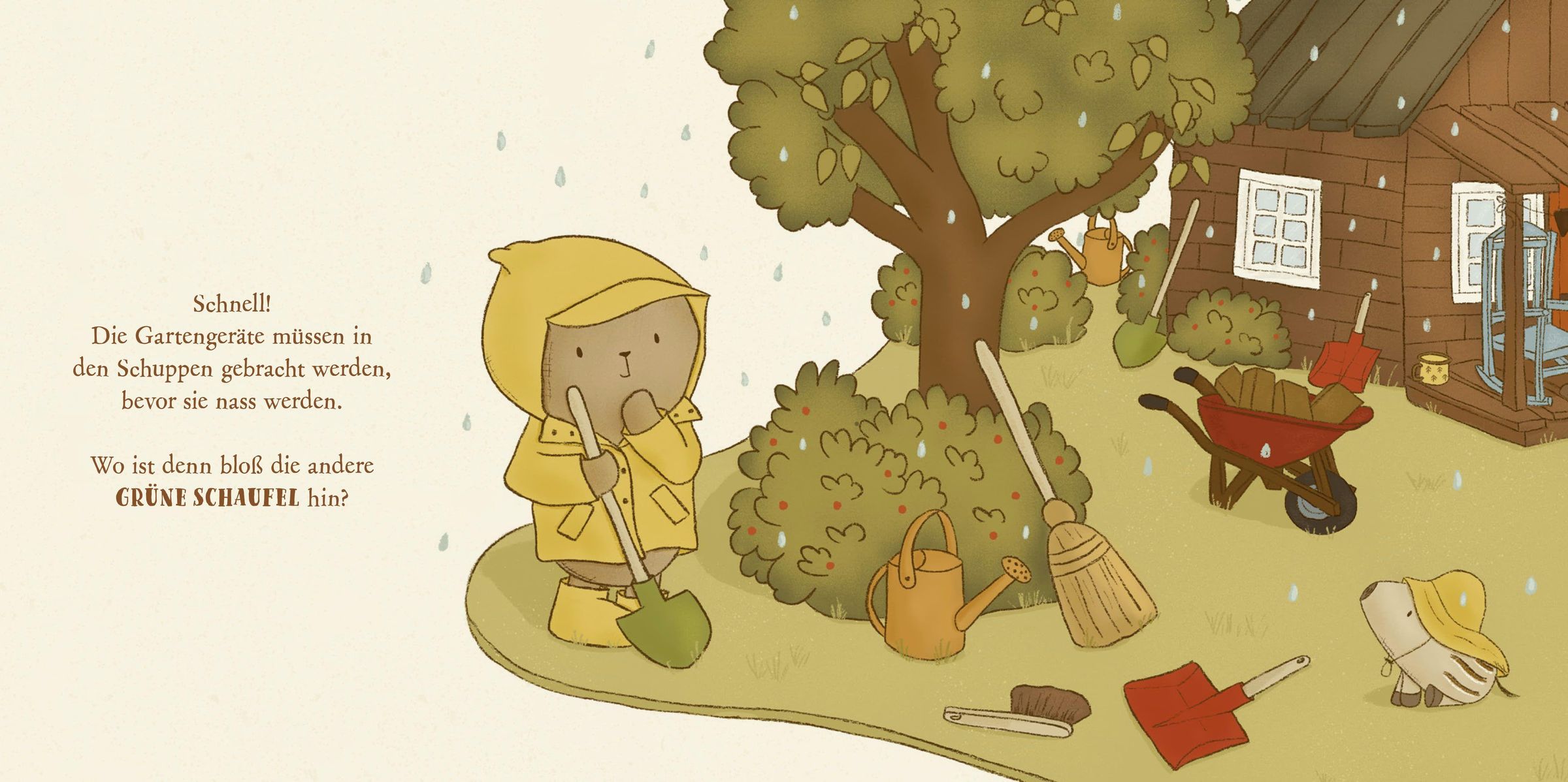 Nanu, wie sieht es denn hier aus? Biberbär Mister O'Lui und sein bester Freund, das Streifenschwein Rupert, müssen dringend aufräumen. Doch das ist leichter gesagt als getan: In der Küche ist die zweite gelbe Tasse verschwunden, im Garten wird eine rote Schaufel vermisst, und irgendwo hat sich die zweite grün-geringelte Socke versteckt. Wer hat gut aufgepasst und kann Mister O'Lui zeigen, wo er suchen muss? Ein interaktives Mitmachbuch, mit dem Farbenlernen und Aufräumen Spaß bringen.