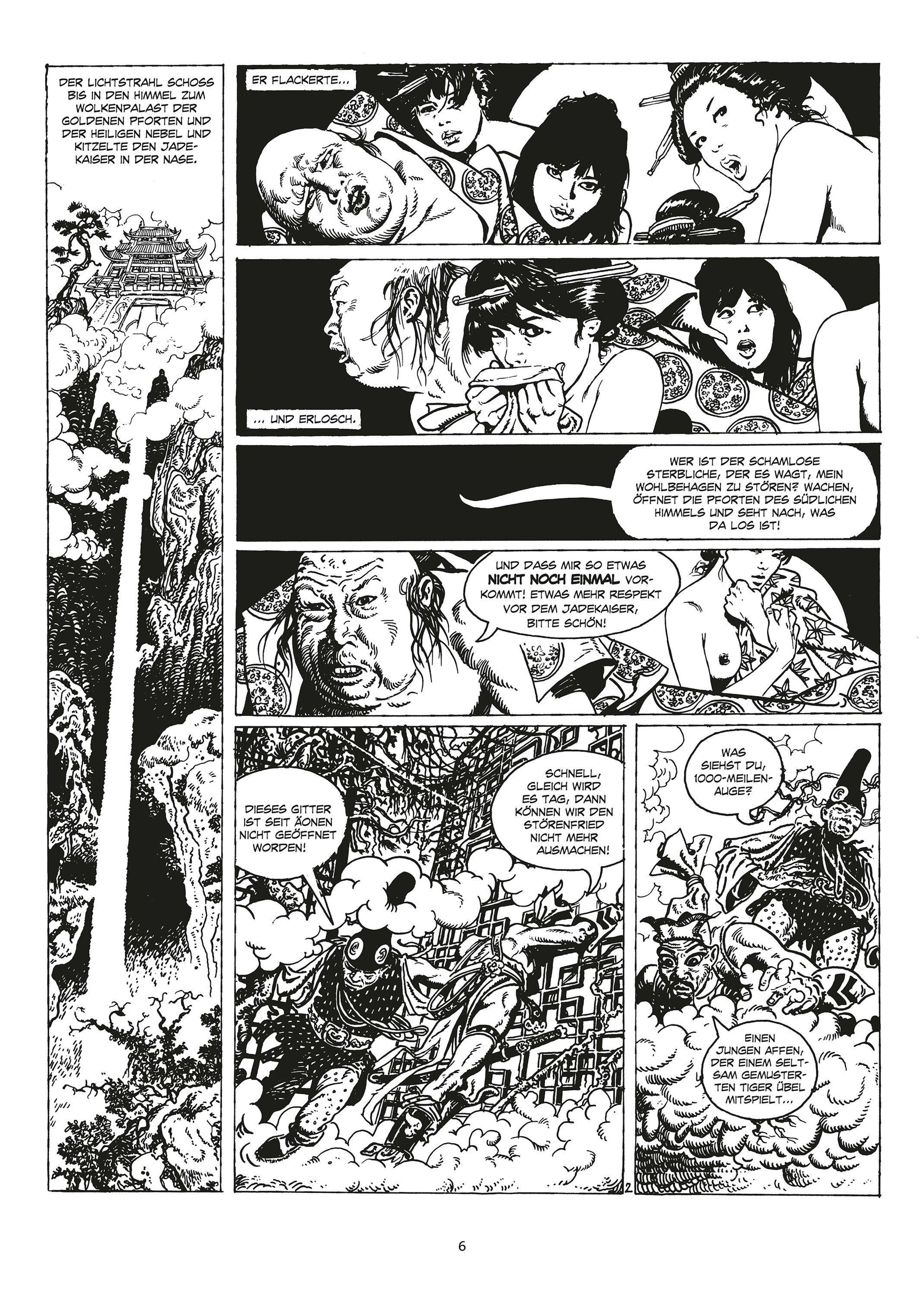 Milo Manara und Silverio Pisu erfinden das große chinesische Märchen 'Die Reise in den Westen' mit Gusto neu und machen daraus ein flamboyantes Epos von anarchischem Humor und mitreißender Action. Und wie nebenbei legen sie dabei einen Meilenstein der Comicgeschichte.