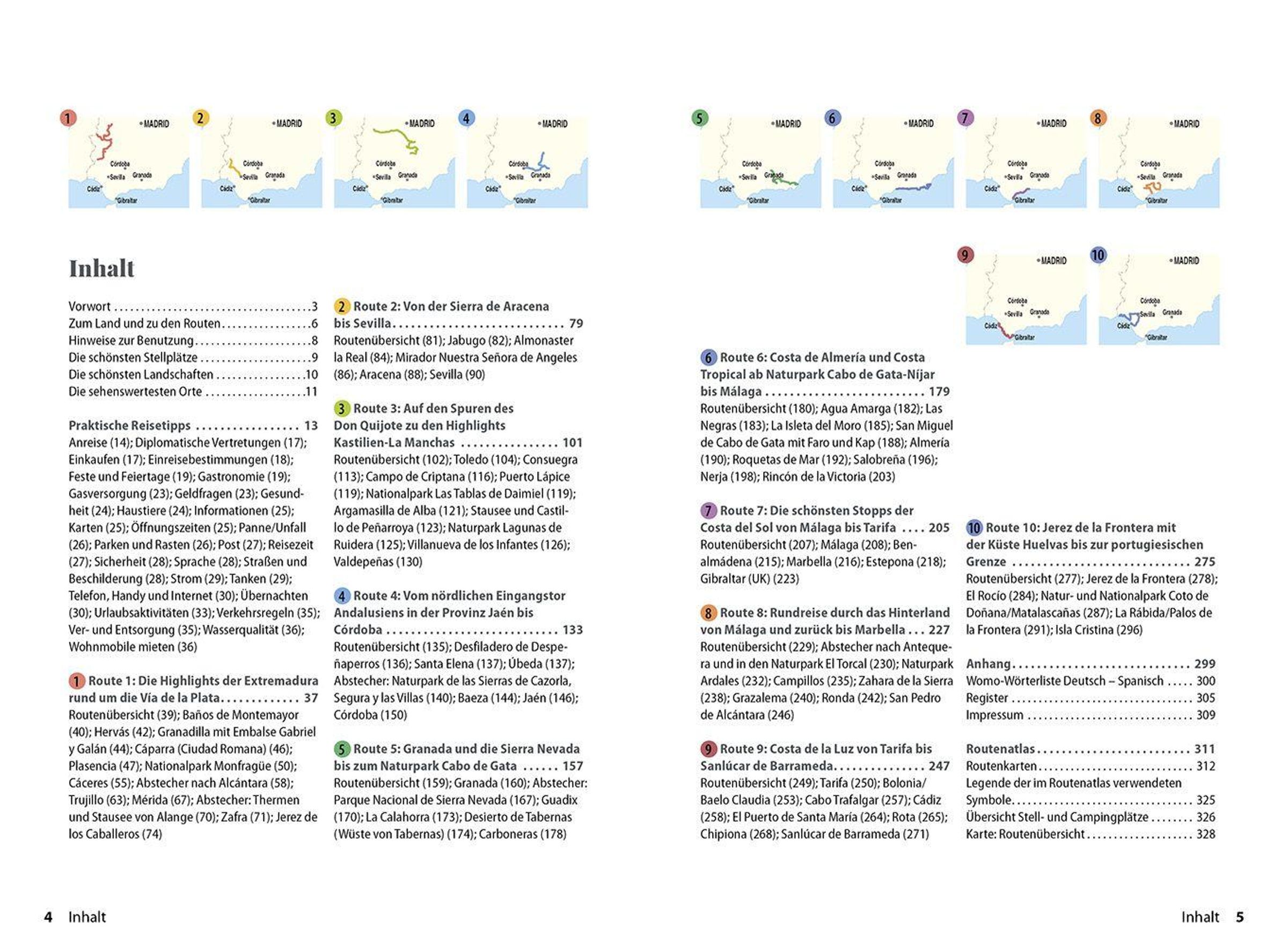 Über 18 Seiten Routenatlas mit Camping- und Stellplätzen