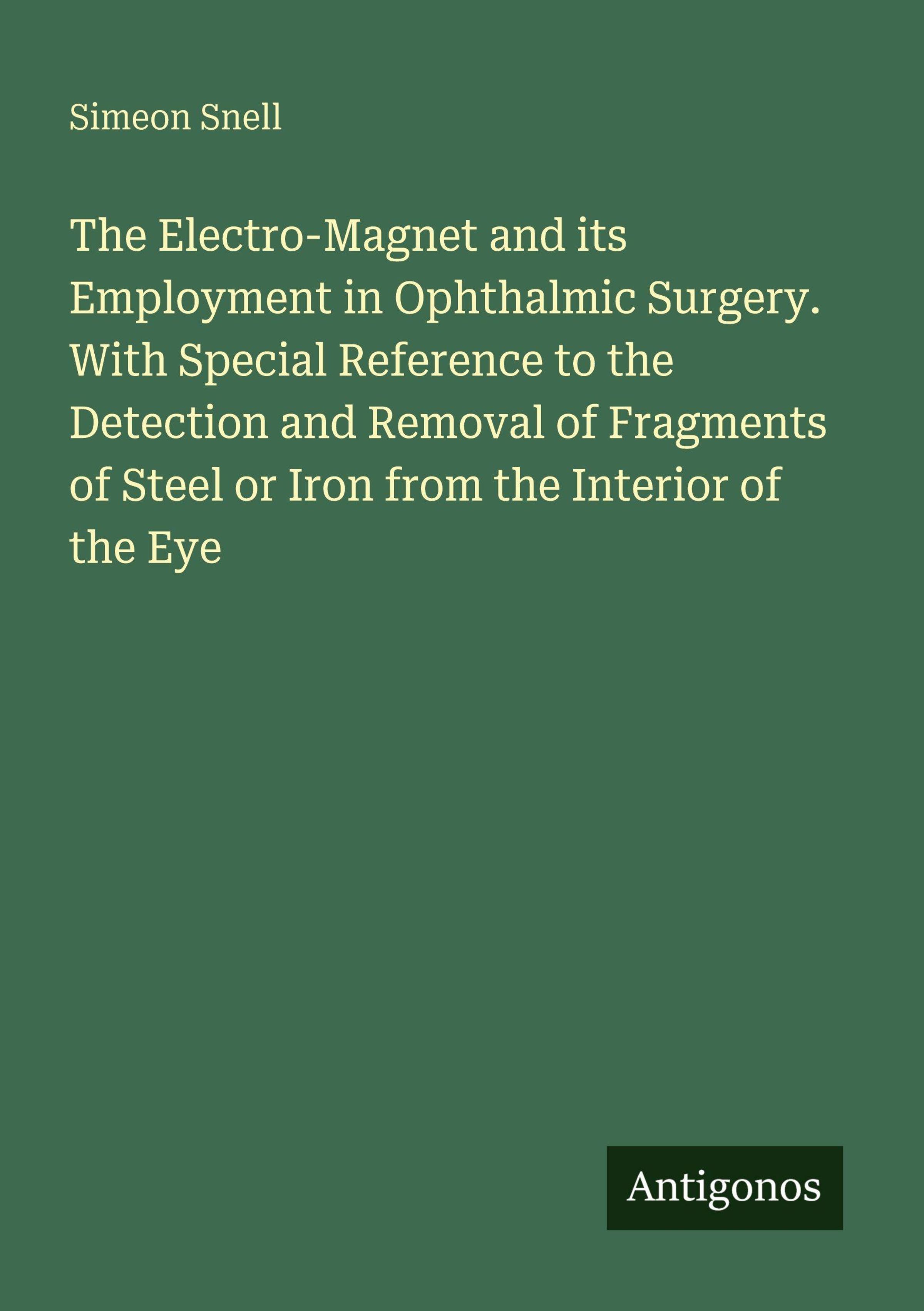 Der Artikel Simeon Snell: The Electro-Magnet and its Employment in Ophthalmic Surgery. With Special Reference to the Detection and Removal of Fragments of Steel or Iron from the Interior of the Eye wurde in den Warenkorb gelegt.