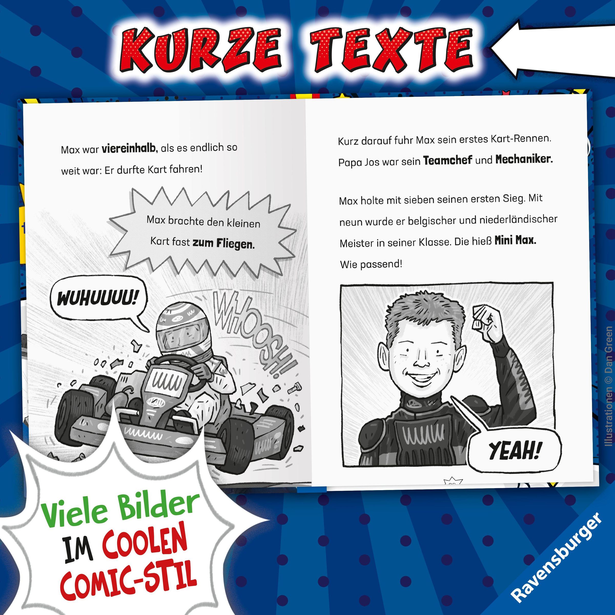 Das perfekte Rennsport-Geschenk für Jungen und Mädchen, die gar nicht genug Wissen über Verstappen sammeln können. In einer Geschichte lesen sie alles über seinen Weg vom Kart fahrenden Jungen bis zum Formel-1-Weltmeister: Wollte er immer Profi-Rennfahrer werden? Bei welchen Rennställen war er? Und was waren seine wichtigsten Rennen und Rekorde? In kindgerechten Statistiken können sie Spannendes über ihr Rennfahr-Idol lernen und sich im Verstappen-Quiz testen. So geht Lesenlernen mit Tempo!
