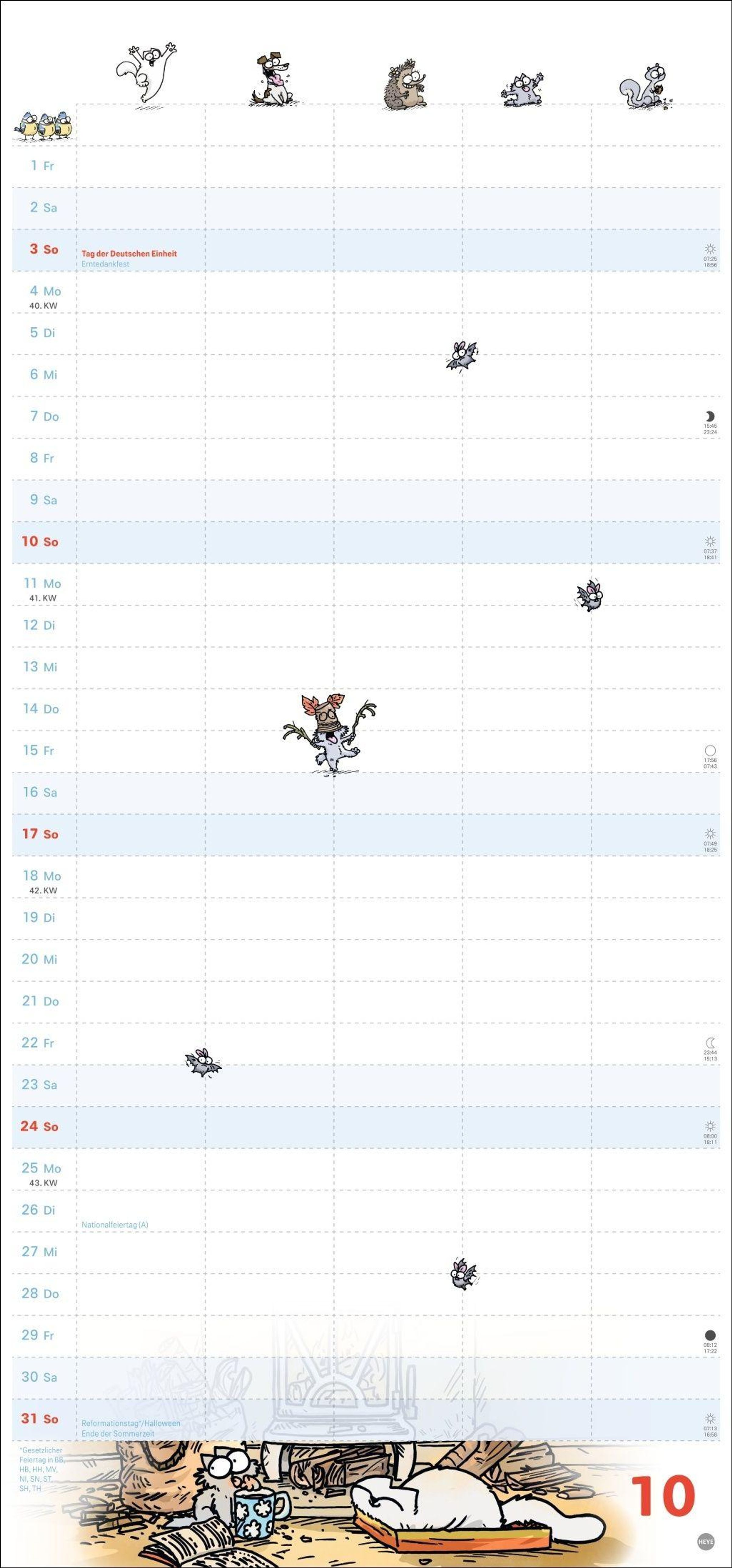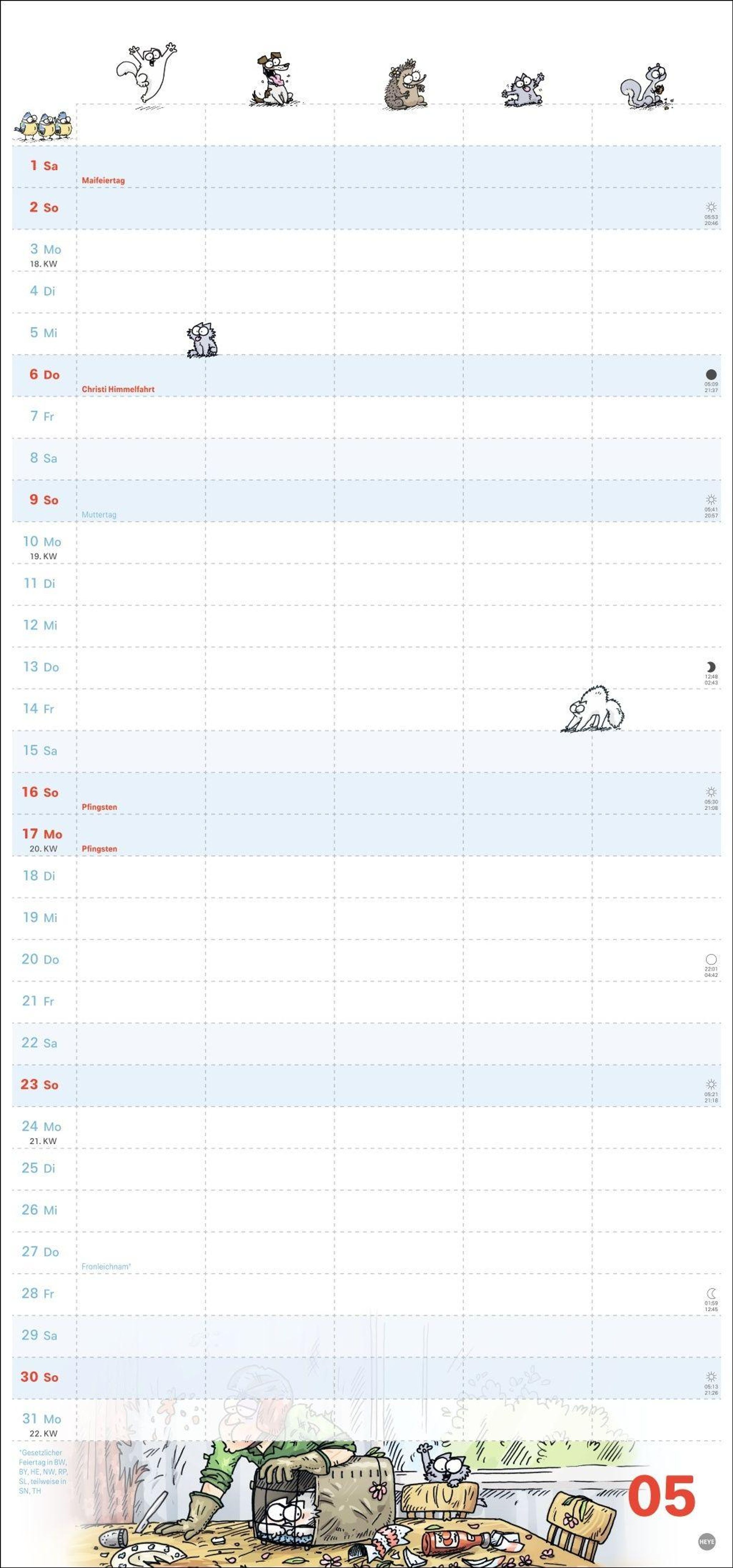 - Familienkalender mit 5 Spalten. Humorvoll illustrierter Familien-Wandkalender mit Schulferien und Stundenplänen.