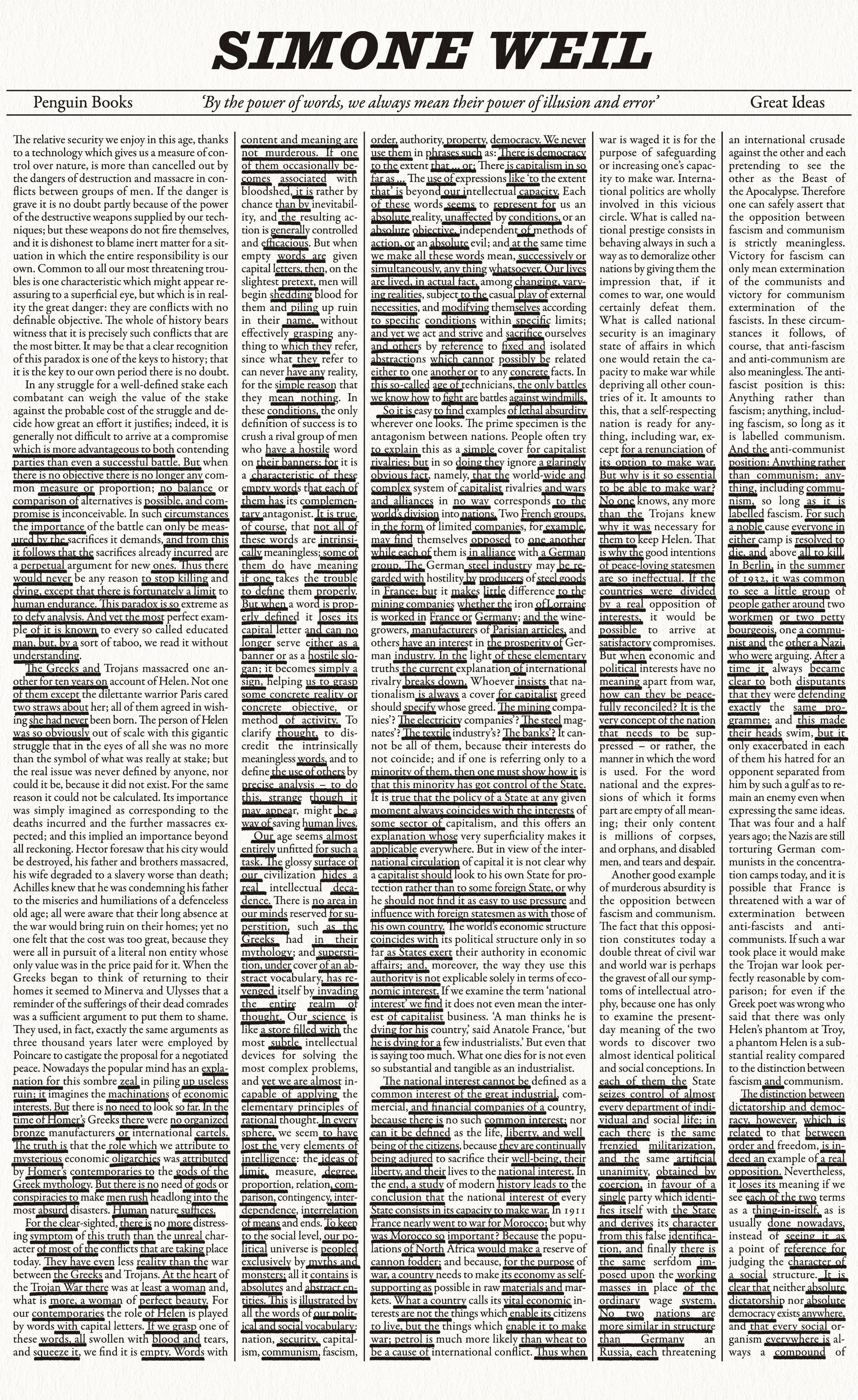 The philosopher and activist Simone Weil was one of the most courageous thinkers of the twentieth century. Here she writes, with honesty and moral clarity, about the manipulation of language by the powerful, the obligations of individuals to one another and the needs - for order, equality, liberty and truth - that make us human.