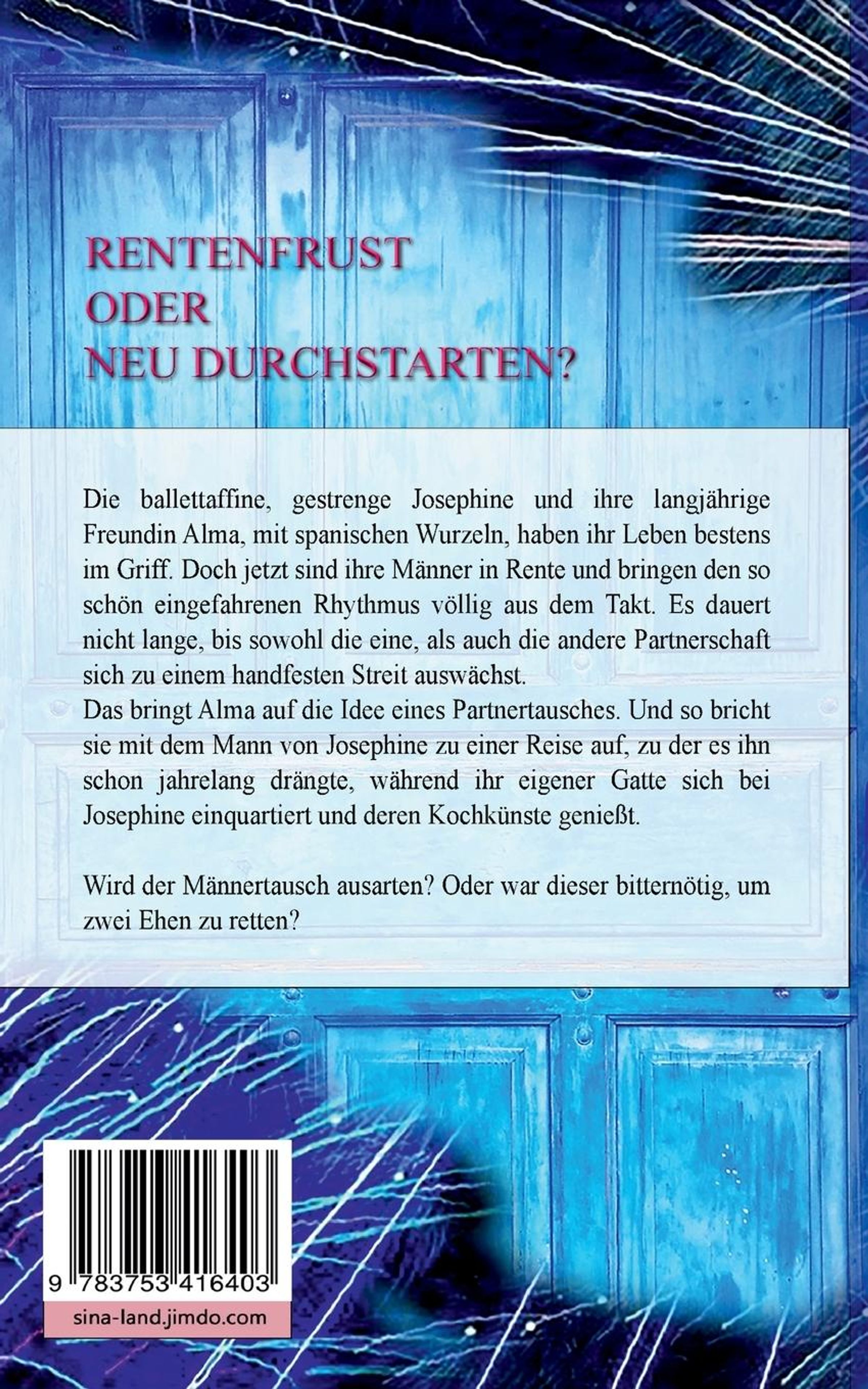 Die ballettaffine, gestrenge Josephine und ihre langjährige Freundin Alma, mit spanischen Wurzeln, haben ihr Leben bestens im Griff. Doch jetzt sind ihre Männer in Rente und bringen den so schön eingefahrenen Rhythmus völlig aus dem Takt. Es dauert nicht lange, bis sowohl die eine, als auch die andere Partnerschaft sich zu einem handfesten Streit auswächst. Das bringt Alma auf die Idee eines Partnertausches. Und so bricht sie mit dem Mann von Josephine zu einer Reise auf, zu der es ihn schon jahrelang drängte, während ihr eigener Gatte sich bei Josephine einquartiert und deren Kochkünste genießt. Wird der Männertausch ausarten? Oder war dieser bitternötig, um zwei Ehen zu retten?