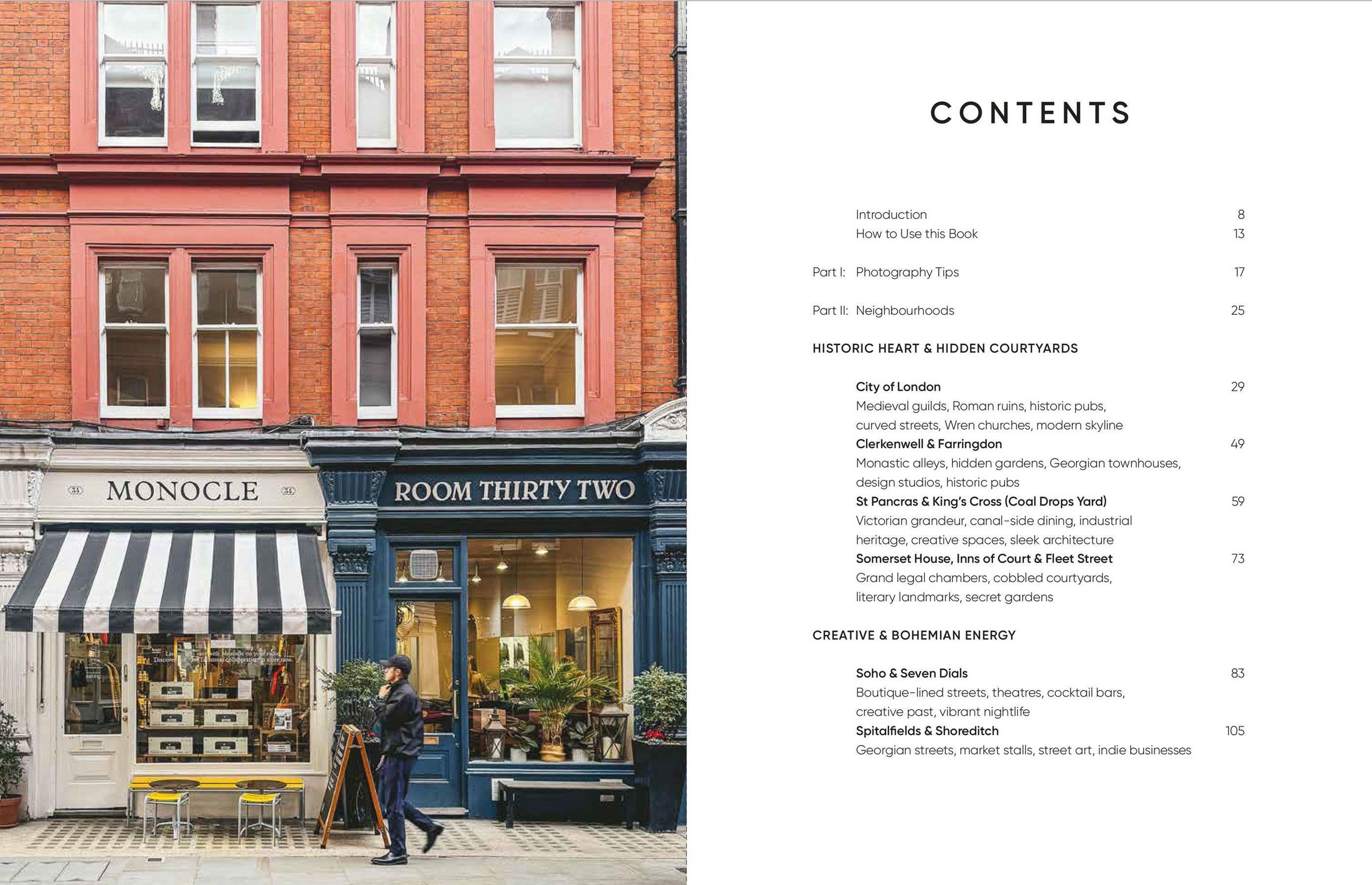 Die renommierte Fotografin stellt in diesem Buch viele reizvolle Stadtteile wie Islington, Little Venice und Spitalfields vor. Dieser beeindruckende Bilband enthält zahlreiche unentdeckte und weniger bekannte Gegenden Londons sowie Tipps, wie Sie Ihr eigenes London-Erlebnis planen und geniessen können, egal ob zu Fuß oder auf dem Sofa zuhause.