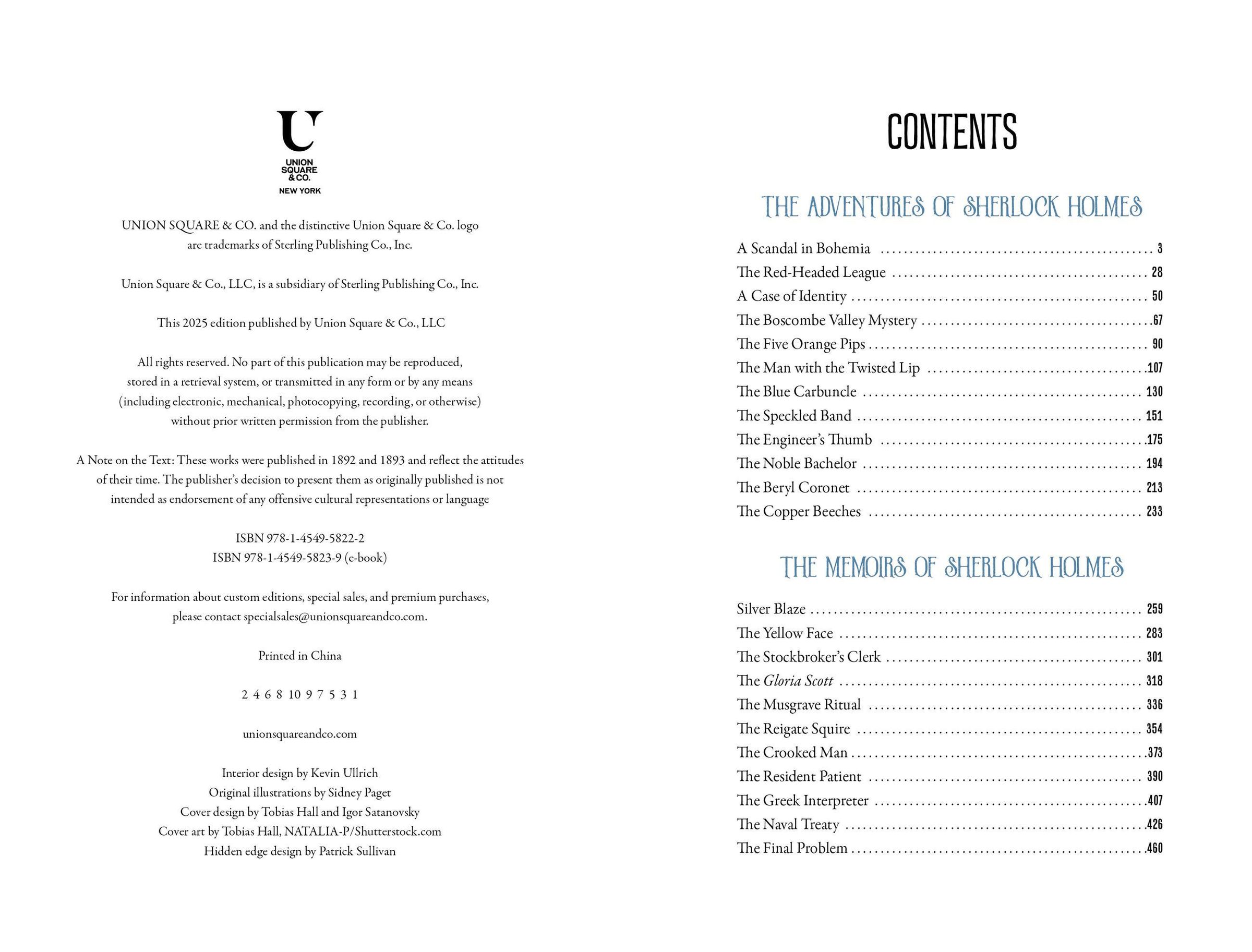 Here, in one volume, are The Adventures of Sherlock Holmes and*The Memoirs of Sherlock Holmes.*This brilliant collection features the original Sidney Paget illustrations, endpapers featuring a Victorian map of London, and hidden edges that will be fun for any sleuth-minded reader!