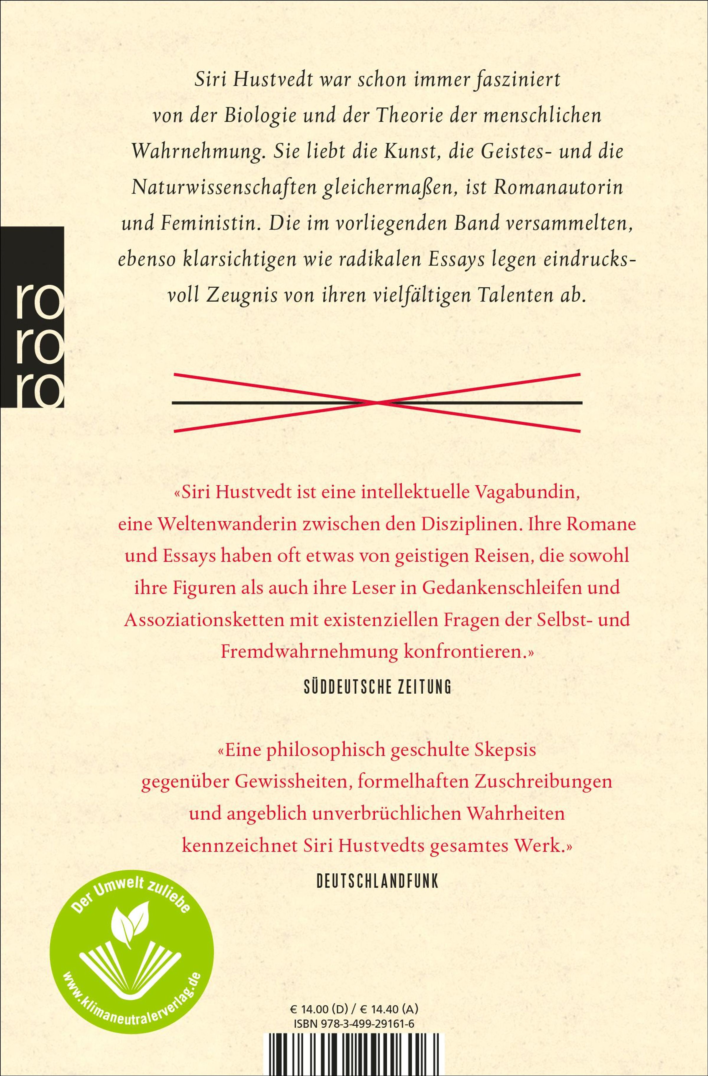 Siri Hustvedt, die Autorin solcher internationaler Bestseller wie "Was ich liebte" und "Der Sommer ohne Männer", war schon immer fasziniert von der Biologie und der Theorie der menschlichen Wahrnehmung. Sie liebt die Kunst, die Geistes- und die Naturwissenschaften gleichermaßen. Sie ist Romanautorin und Feministin. Die im vorliegenden Band versammelten, ebenso klarsichtigen wie radikalen Essays legen eindrucksvoll Zeugnis von ihren vielfältigen Talenten ab. Der erste Teil untersucht die Fragen, die mitbeeinflussen, wie wir Kunst und die Welt im Allgemeinen sehen und beurteilen: Fragen der Wahrnehmung, Fragen des Geschlechts. Grundlagen dieser Diskussion sind etwa Werke von Picasso, de Kooning, Jeff Koons, Louise Bourgeois, Anselm Kiefer, Robert Mapplethorpe, Susan Sontag und Karl Ove Knausgard. Der zweite Teil befasst sich mit neurologischen Störungen und, unter anderem, mit den Rätseln von Hysterie und Synästhesie sowie mit der Selbsttötung. In letzter Zeit wird oft gefordert, man müsste eine neue, stabile Brücke zwischen Geistes- und Naturwissenschaften bauen. Im Moment existiert nur eine behelfsmäßige, aber Siri Hustvedt fühlt sich ermutigt von den Reisenden, die sie in beide Richtungen überquert haben. "Eine Frau schaut auf Männer, die auf Frauen schauen" ist eine einsichts- und eindrucksvolle Bestandsaufnahme dieser Reisen.