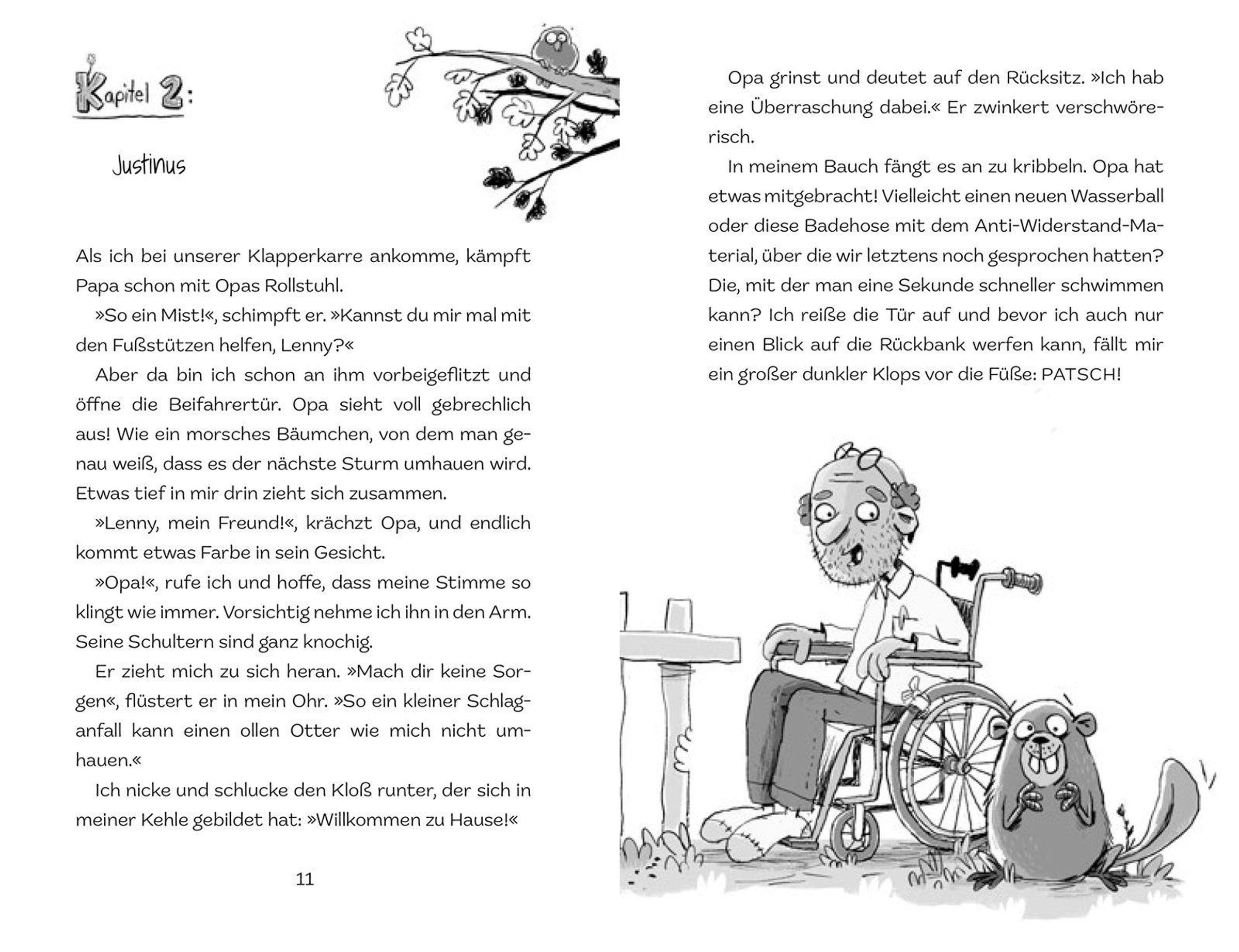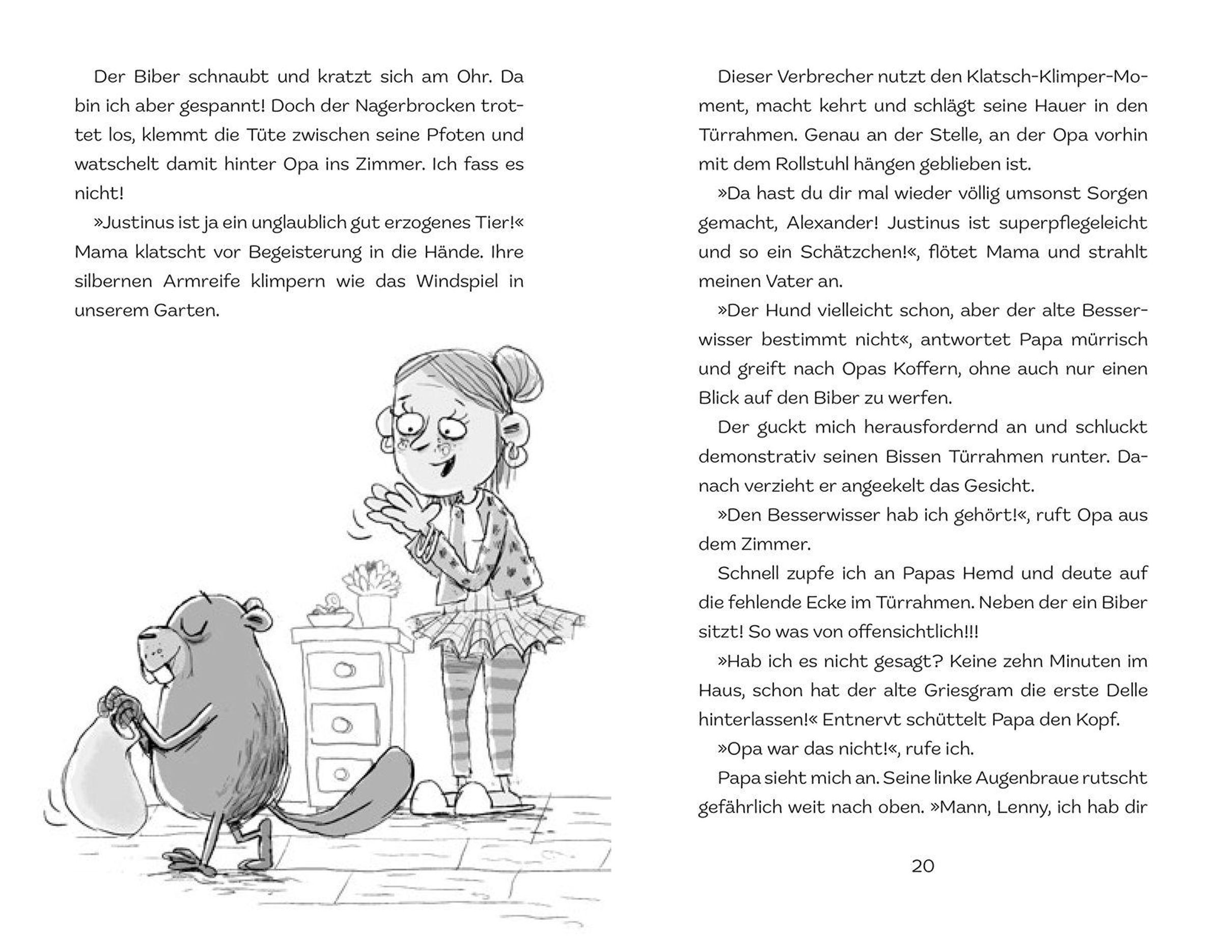Als Opa mit seinem neuen Assistenzhund bei Lenny zu Hause einzieht, freut sich Lenny. Immerhin war Opa mal Wasserballtrainer und Lenny steht kurz vor der Qualifikation fürs Wasserballteam. Und Hunde findet Lenny auch super. Doch als Opa und sein 'Hund' Justin dann da sind, merkt er: Mit Justin stimmt was nicht. Er knabbert nicht nur jeden Türrahmen und alle Gartenmöbel an, er besetzt auch Lennys heißgeliebten Trainingspool. Justin ist ein Biber, und er entpuppt sich als absoluter Endgegner! Wenn Justin den Pool nicht mehr freigibt, wars das mit Lennys Schwimmtraining. Er muss ihn ... irgendwie ... loswerden.