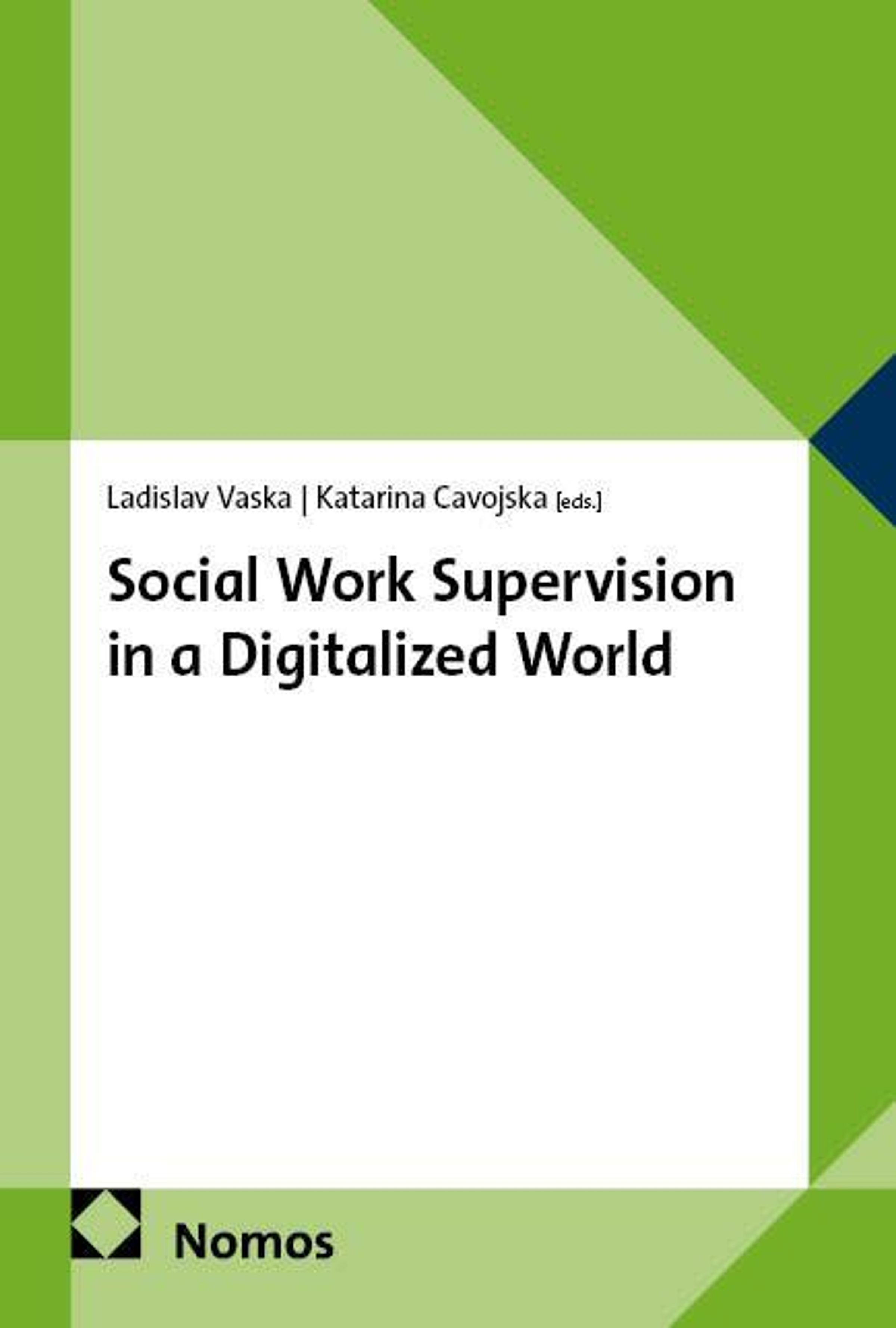 "Social Work Supervision in a Digitalized World" von Ladislav Vaska und Katarina Cavojksa. Grünes geometrisches Design. Nomos-Logo., Buch