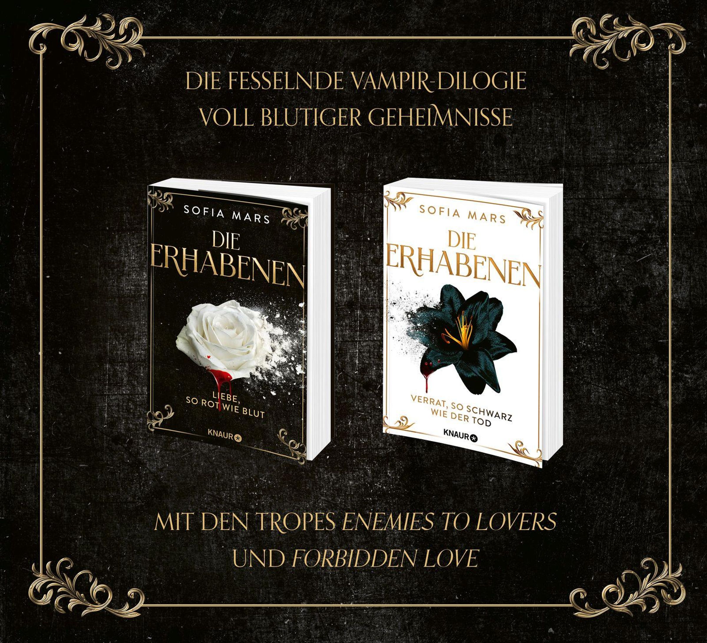 Die Romantasy-Dilogie 'Die Erhabenen' besteht aus den beiden Vampir-Liebesromanen 'Liebe, so rot wie Blut' und 'Verrat, so schwarz wie der Tod'.