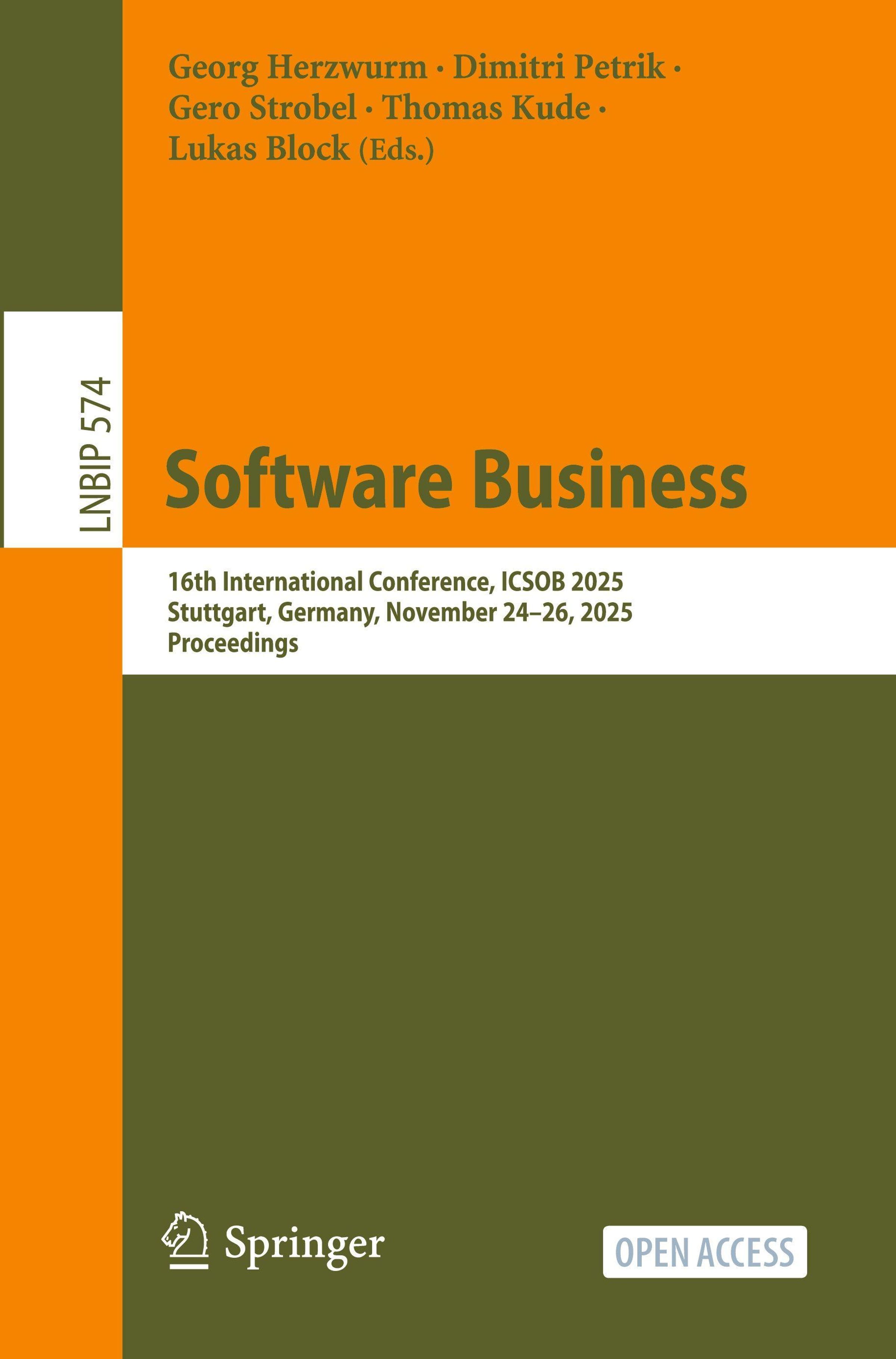 This open access book constitutes the refereed proceedings of the 16th International Conference on Software Business, ICSOB 2025, which took place in Stuttgart, Germany, during November 24-26, 2025. The special theme of ICSOB 2025 was Software Business in Digital Societies.