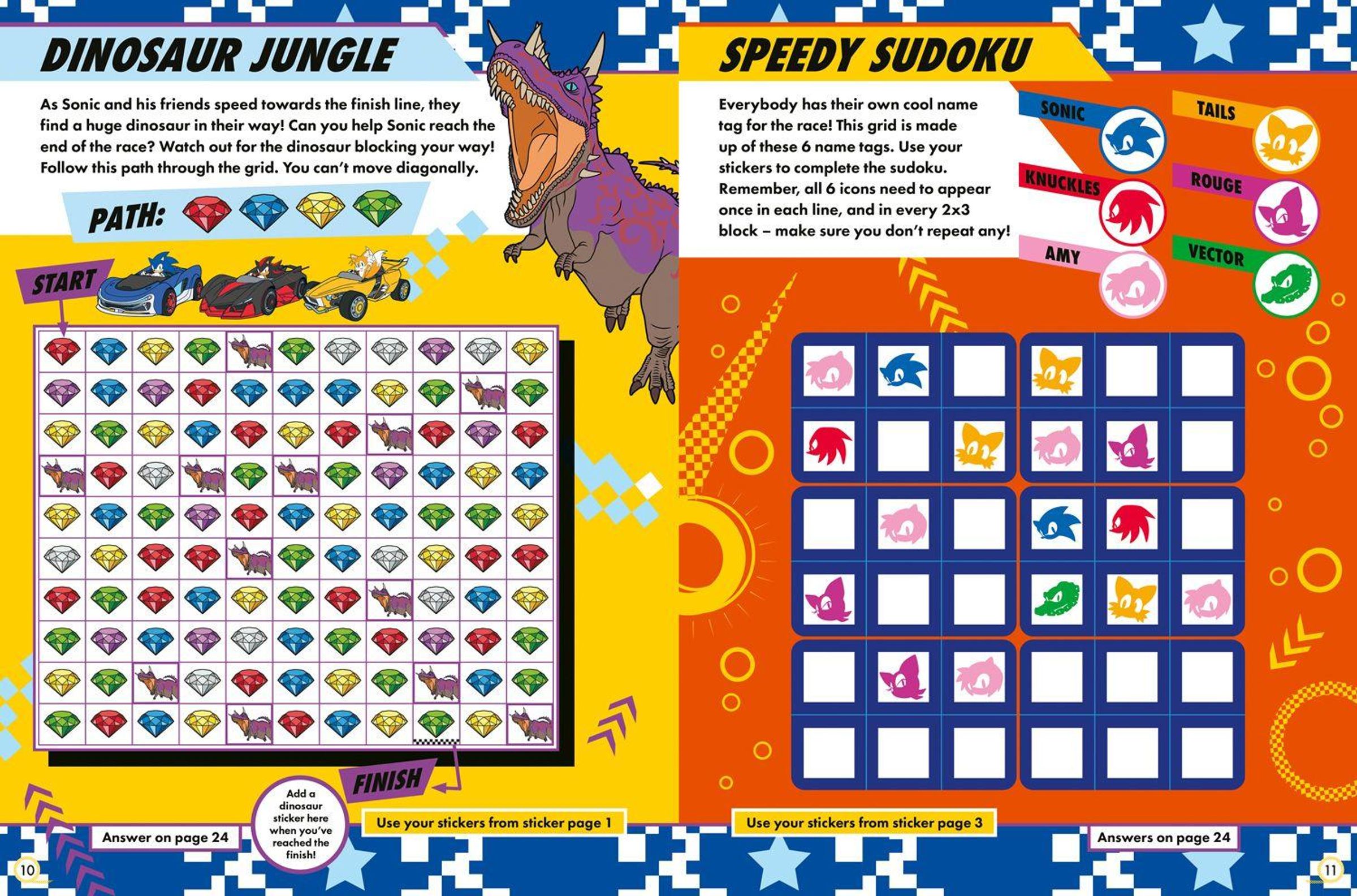 Race to the finish of each activity with your pal Sonic, and use your stickers to tackle mazes, sequences, word games and so much more!