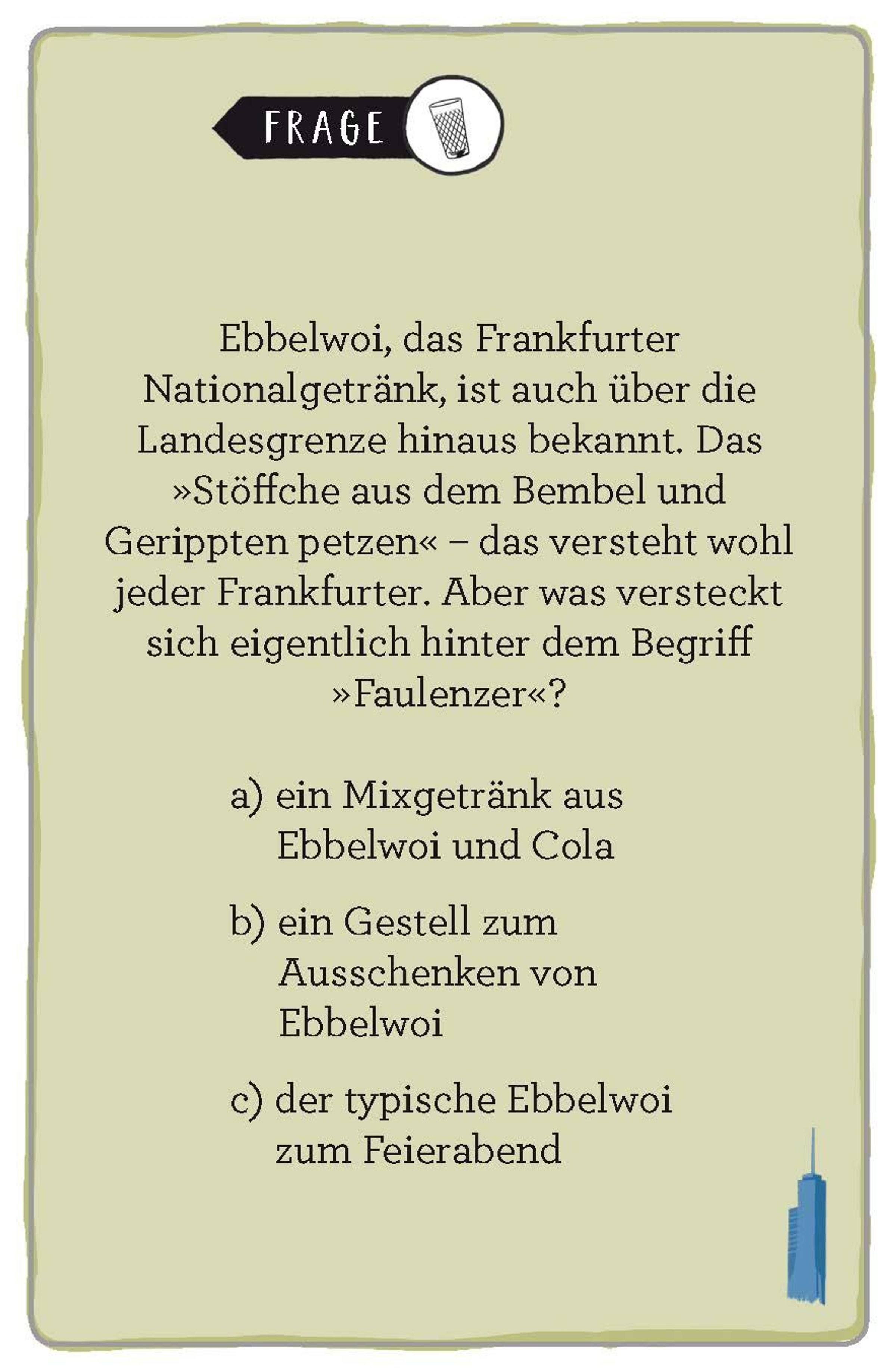 Wie gut kennst du Frankfurt? Mainhattan hat mehr zu bieten als Banken, Börse und Buchmesse: Hinter der imposanten Skyline verstecken sich hippe Szeneviertel, geschäftige Einkaufsstraßen, dörfliche Stadtteile, romantische Parks und überhaupt jede Menge Grün. Sonja Morawietz-Heinemann und Hartmut Heinemann kennen die versteckten Winkel und erzählen in 100 Fragen nicht alltägliche, verblüffende Geschichten rund um die Goethestadt. Eine wunderbar verspielte Liebeserklärung an Frankfurt!