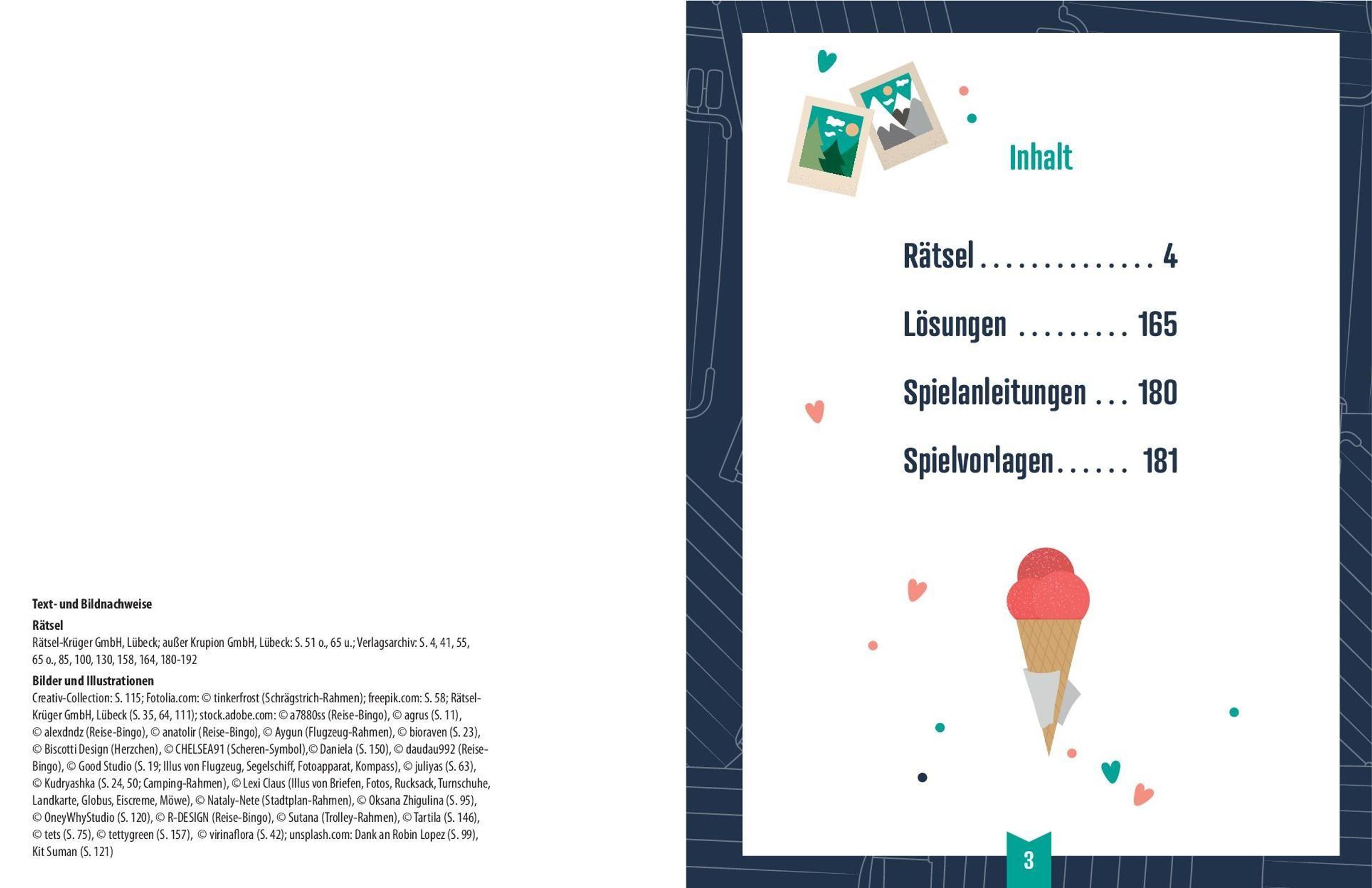 Und wenn du in der Gruppe oder mit der Familie reist, sorgen lustige Reisespiele für Abwechslung und Unterhaltung. Für vier spannende Spieleklassiker, von Stadt, Land, Fluss bis Tic Tac Toe, findest du am Ende des Buches die passenden Spielvorlagen-Blätter und Anleitungen. Mit diesem bunten Rätselbuch erlebst du garantiert einen entspannten, abwechslungsreichen Urlaub.