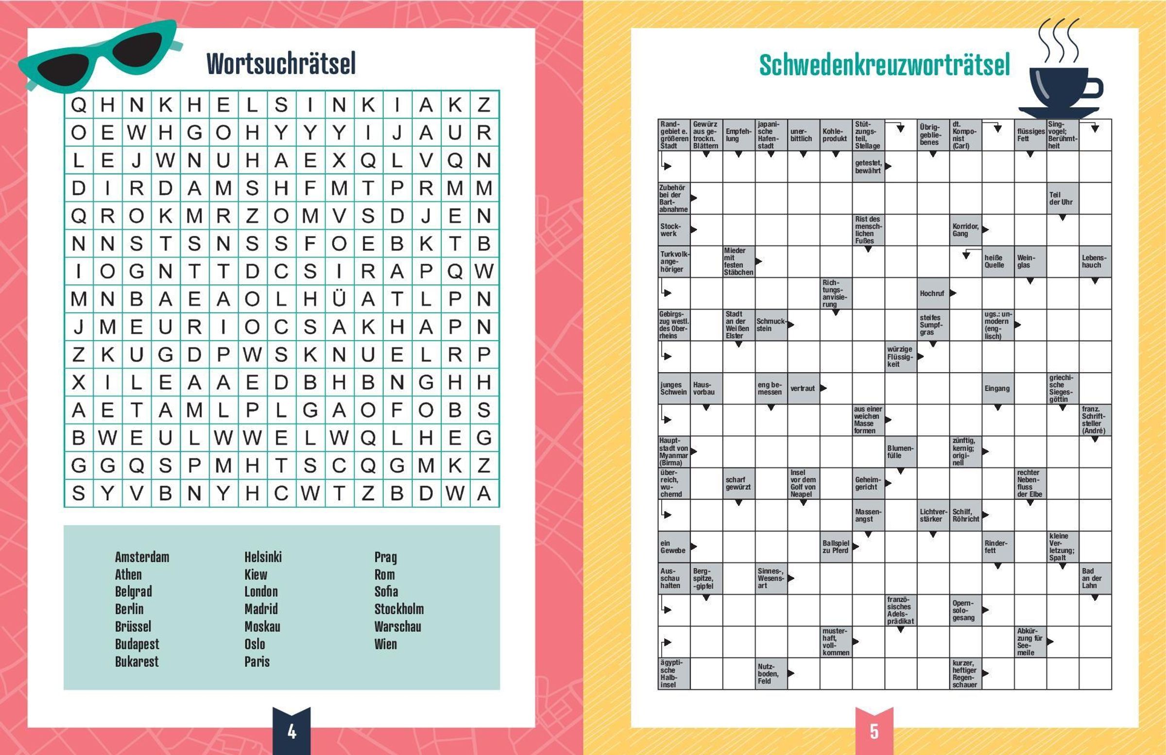 Dieses Rätselbuch ist dein perfekter Begleiter für unterwegs. Ob du im Zug sitzt, auf den Flug wartest oder einfach nur in einem Café entspannst - hier findest du spannenden Rätselspaß mit über 200 Herausforderungen, vom klassischen Kreuzworträtsel über Wortsuch-, Logik- oder Bilderrätsel bis hin zu kniffligen Sudokus. Die bunte Mischung bietet Spaß und Entspannung für jede Gelegenheit. Dank kompakter Form passt das Buch in jede Tasche und ist damit der perfekte Reisebegleiter.