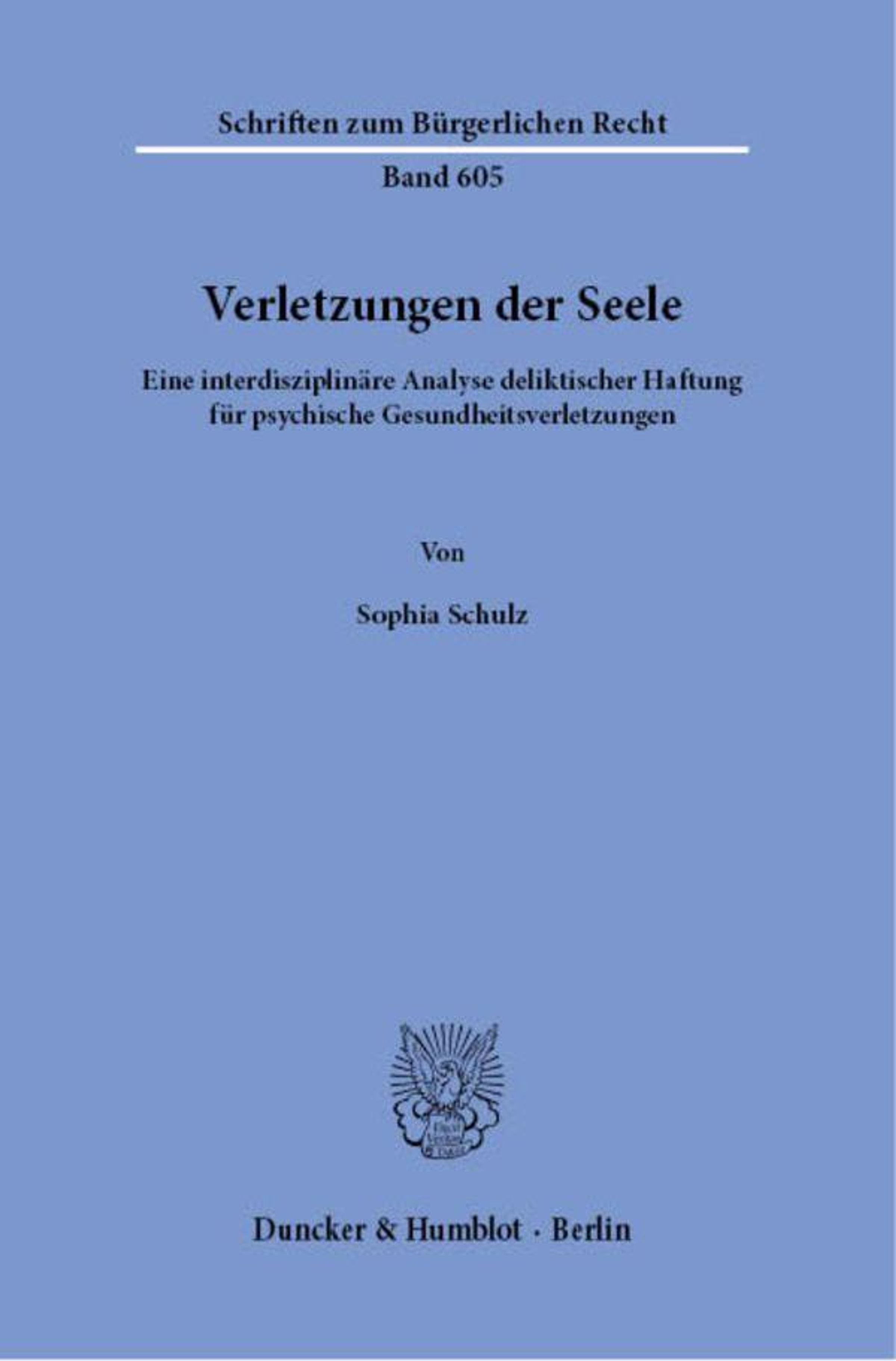"Schriften zum Bürgerlichen Recht, Band 605: Verletzungen der Seele" von Sophia Schulz, Verlag Duncker & Humblot, mit Logo., Buch