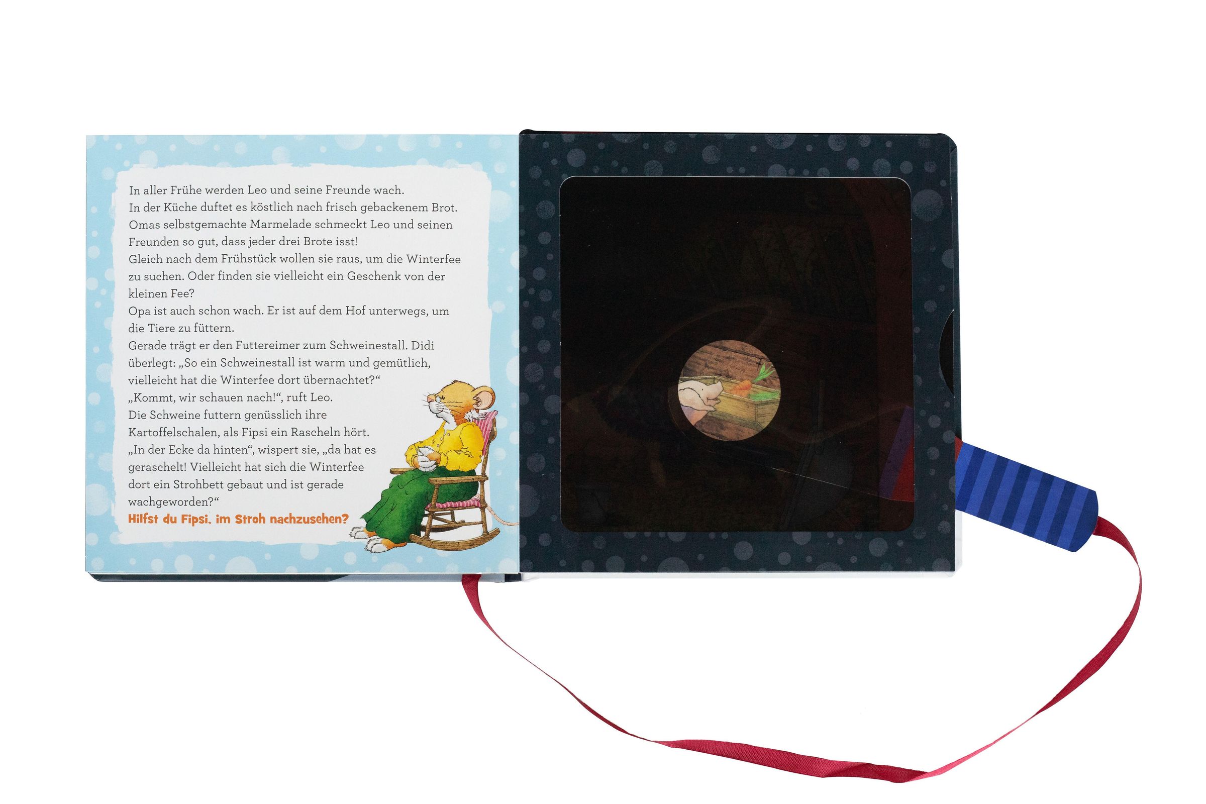 Eine stimmungsvolle winterliche Vorlesegeschichte führt kleine Zuhörer durch die einzelnen Szenen. Auf den detailreichen Entdecker-Seiten laden kurze Fragen dazu ein, mit der beiliegenden Papp-Taschenlampe aktiv auf die Suche zu gehen. Durch das gezielte "Anleuchten" werden versteckte Motive sichtbar und sorgen für spielerische Aha-Momente.