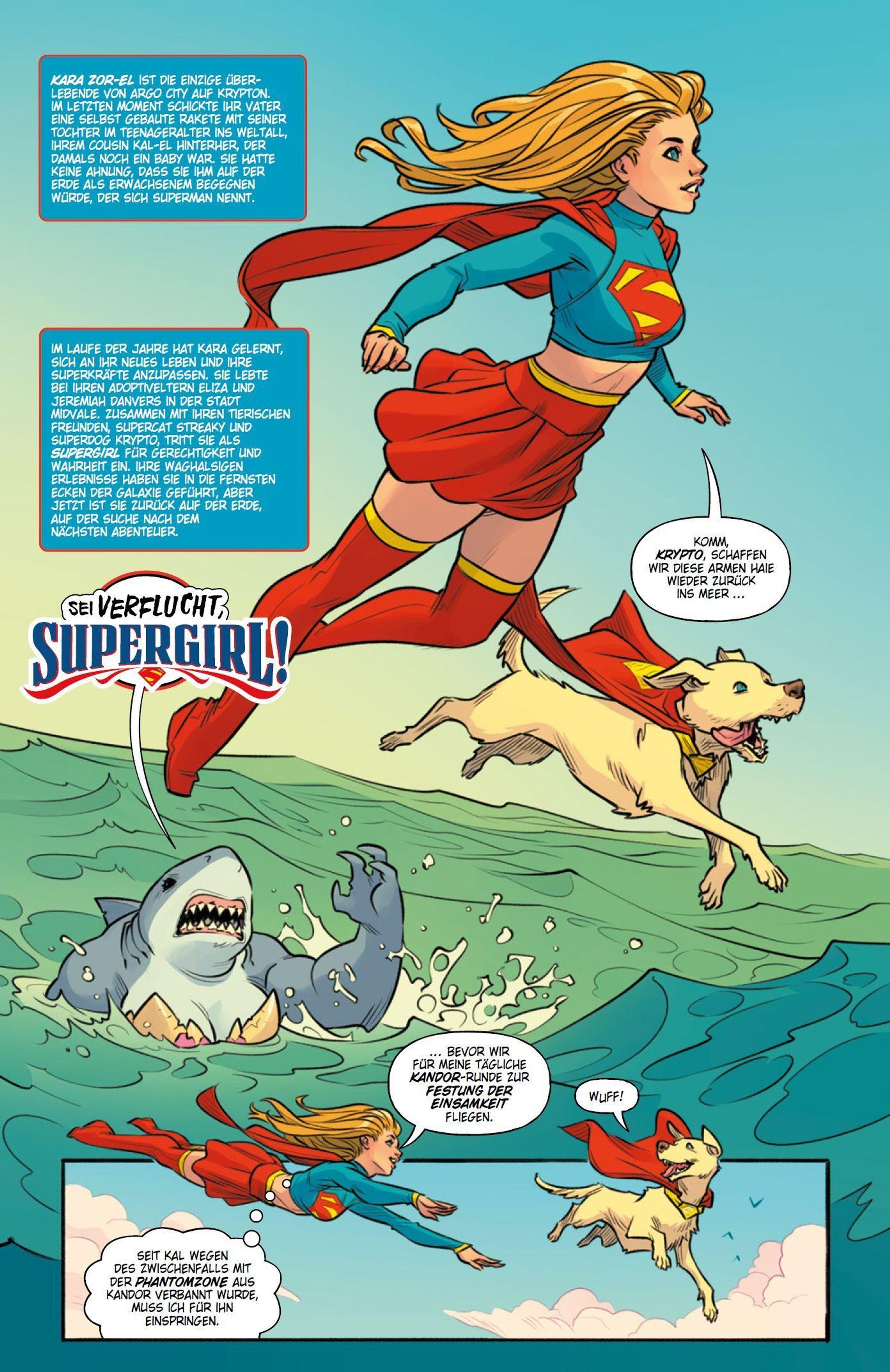 ZWEI SUPERGIRLS SIND EINS ZU VIEL! Kara Zor-El ist Supergirl - oder etwa nicht? Die stählerne Heldin kehrt aus Metropolis in ihr Heimatstädtchen, das idyllische Midvale, zurück, nur um festzustellen, dass sich eine andere Superheldin als Supergirl ausgibt! Wie soll Kara die Betrügerin entlarven, wenn selbst ihre geliebten Adoptiveltern sie nicht erkennen? Und als wäre das nicht schon genug, tauchen auch noch der Riesenaffe Titano, und die Tochter von Lex Luthor, Lena Luthor, auf. Die neue Supergirl-Serie der gefeierten Autorin und Zeichnerin Sophie Campbell (DC Pride, Jem and the Holograms)!