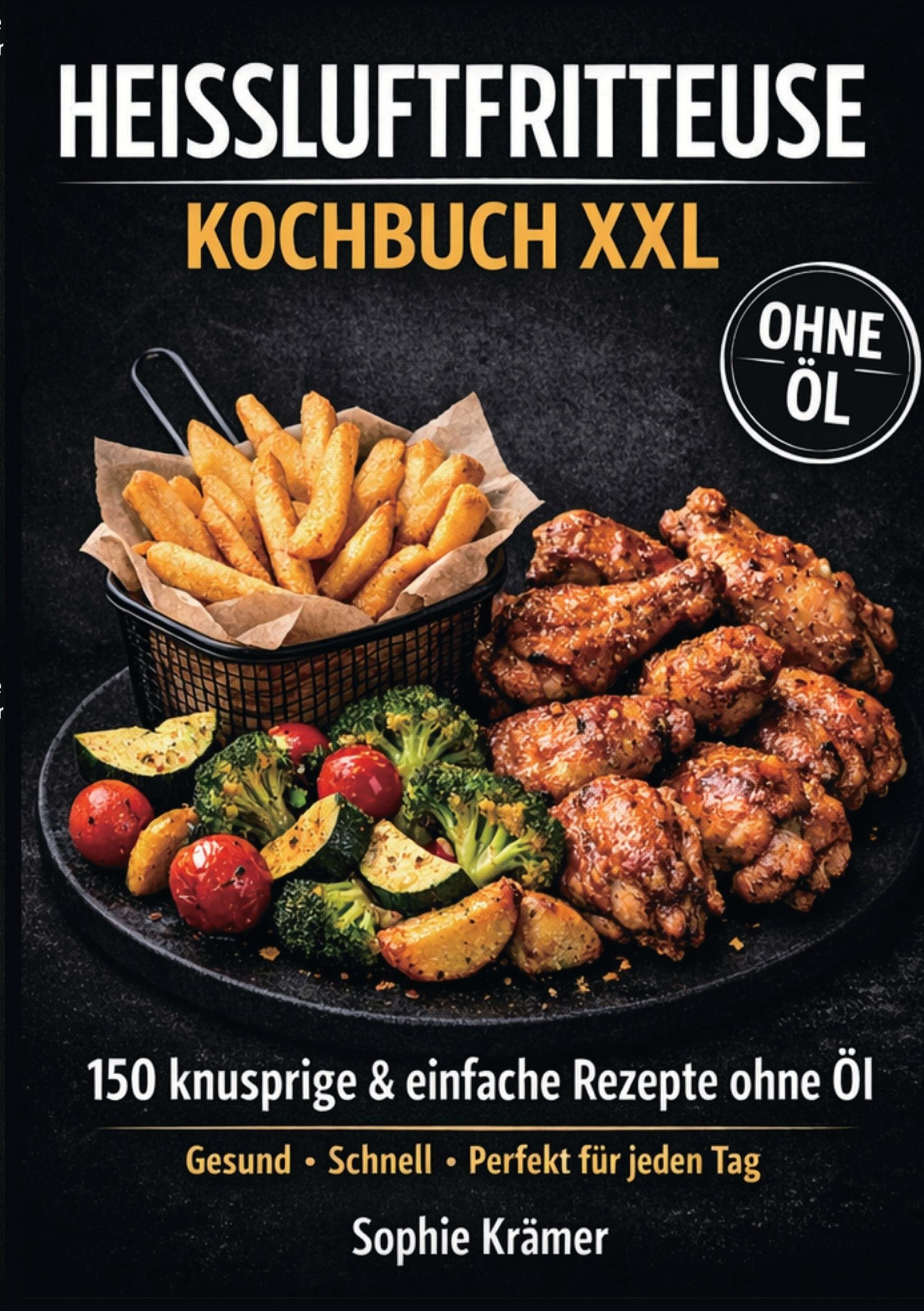 Knusprig genießen - ganz ohne Öl! Sie möchten Ihre Lieblingsgerichte endlich gesünder zubereiten, ohne auf Geschmack zu verzichten? Dann ist dieses Buch genau das Richtige für Sie! Mit der Heißluftfritteuse gelingt es Ihnen spielend leicht, knusprige, aromatische und abwechslungsreiche Mahlzeiten zuzubereiten - schnell, unkompliziert und fettarm. In diesem großen Heißluftfritteuse Kochbuch erwarten Sie über 100 sorgfältig ausgewählte Rezepte, die perfekt auf den Alltag abgestimmt sind. Egal, ob Sie gerade erst anfangen oder bereits Erfahrung mit dem Airfryer haben - hier finden Sie garantiert Inspiration für jede Gelegenheit. Freuen Sie sich auf eine große Vielfalt: von herzhaften Frühstücksideen über schnelle Snacks, saftige Fleisch- und Fischgerichte bis hin zu leichten Desserts und erfrischenden Getränken. Alle Rezepte sind bewusst ohne Öl konzipiert und setzen auf natürliche Zutaten, klare Schritte und maximale Einfachheit. Dieses Buch bietet Ihnen: . Knusprige Rezepte ohne Öl - gesund und voller Geschmack . Schnelle und einfache Zubereitung - perfekt für den Alltag . Klare Schritt-für-Schritt-Anleitungen - ideal für Anfänger . Vielfältige Ideen für jede Mahlzeit - von Frühstück bis Dessert . Praktische Tipps für perfekte Airfryer-Ergebnisse Ob für die gesunde Ernährung, zum Abnehmen oder einfach für mehr Genuss im Alltag - dieses Kochbuch macht Ihre Heißluftfritteuse zum unverzichtbaren Küchenhelfer. Entdecken Sie, wie einfach es ist, gesund, schnell und unglaublich lecker zu kochen - jeden Tag aufs Neue!