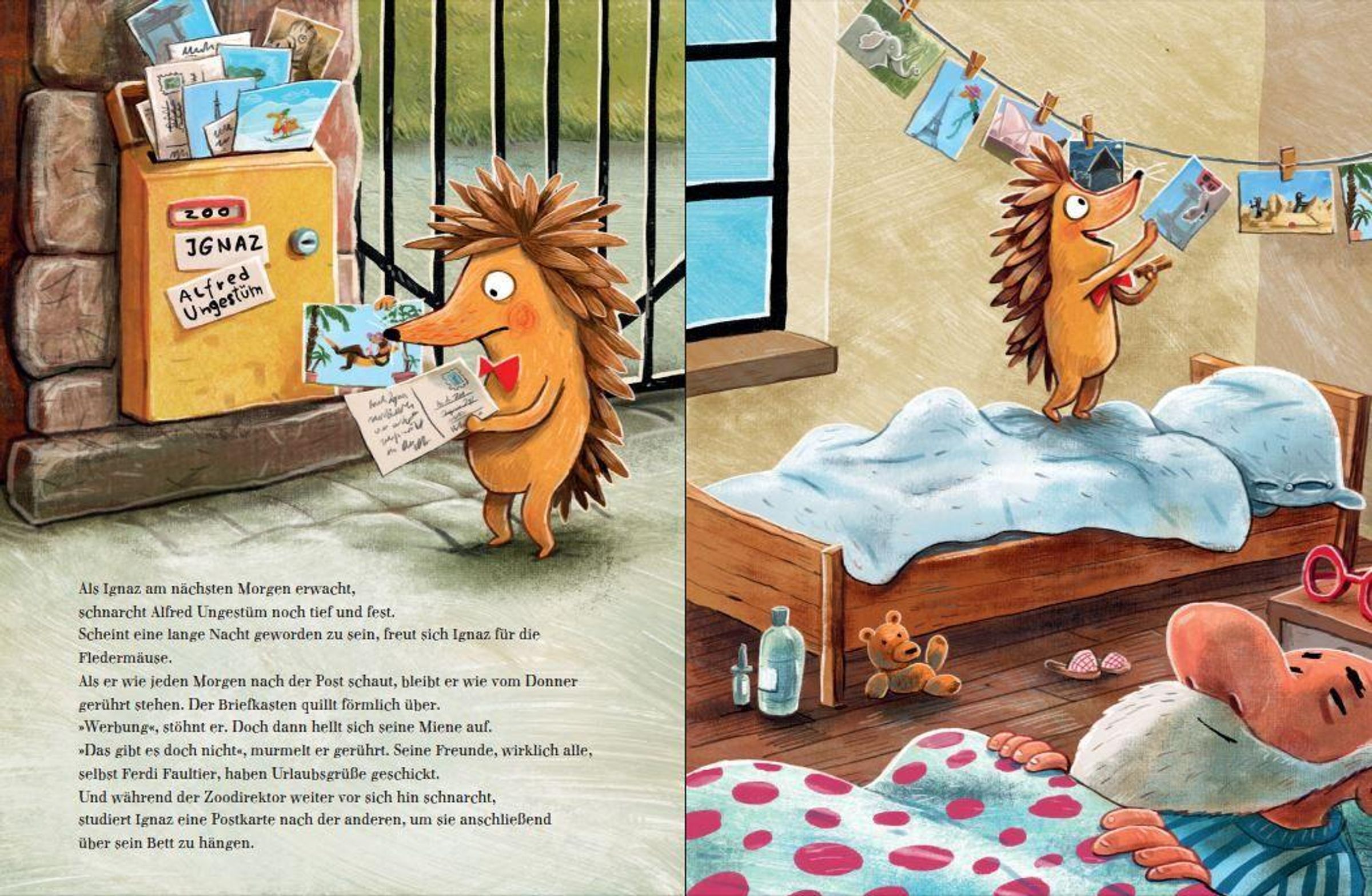 "Heute bleibt der Zoo geschlossen!", verkündet Zoodirektor Ungestüm freudig. "Wir fahren in den Urlaub!" Was für eine tolle Idee, finden die Zootiere und haben sofort ganz genaue Vorstellungen davon, wohin die Reise gehen soll: Gisela Giraffe möchte am liebsten nach Paris fahren, Piet Pinguin freut sich auf Urlaub in der Sonne, und die Kamele würden so gern mal echten Schnee sehen. Doch wie bekommt man alle Wünsche nur unter einen Hut? Schließlich lässt sich so eine Weltreise nicht an einem Tag schaffen. Oder etwa doch? Denn Ignaz Pfefferminz Igel hat wie immer eine pfiffige Idee ...