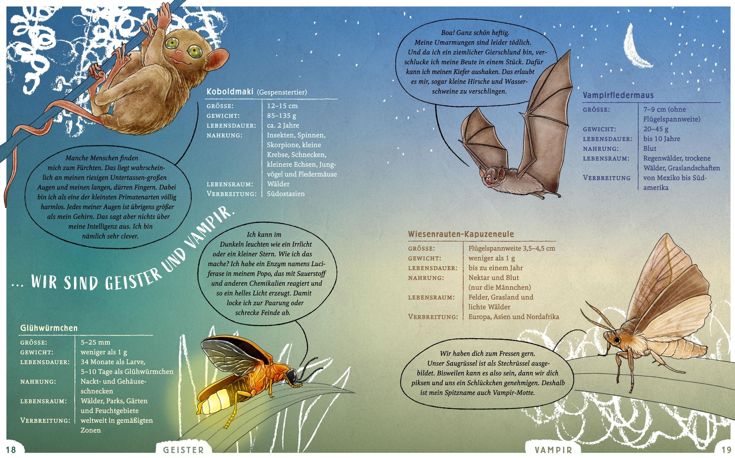 Geballtes Tierwissen verpackt in lustige Anekdoten, die jedes Tier, ob klein oder groß, ob alt oder jung, ob Jäger oder Beute zum Star machen.