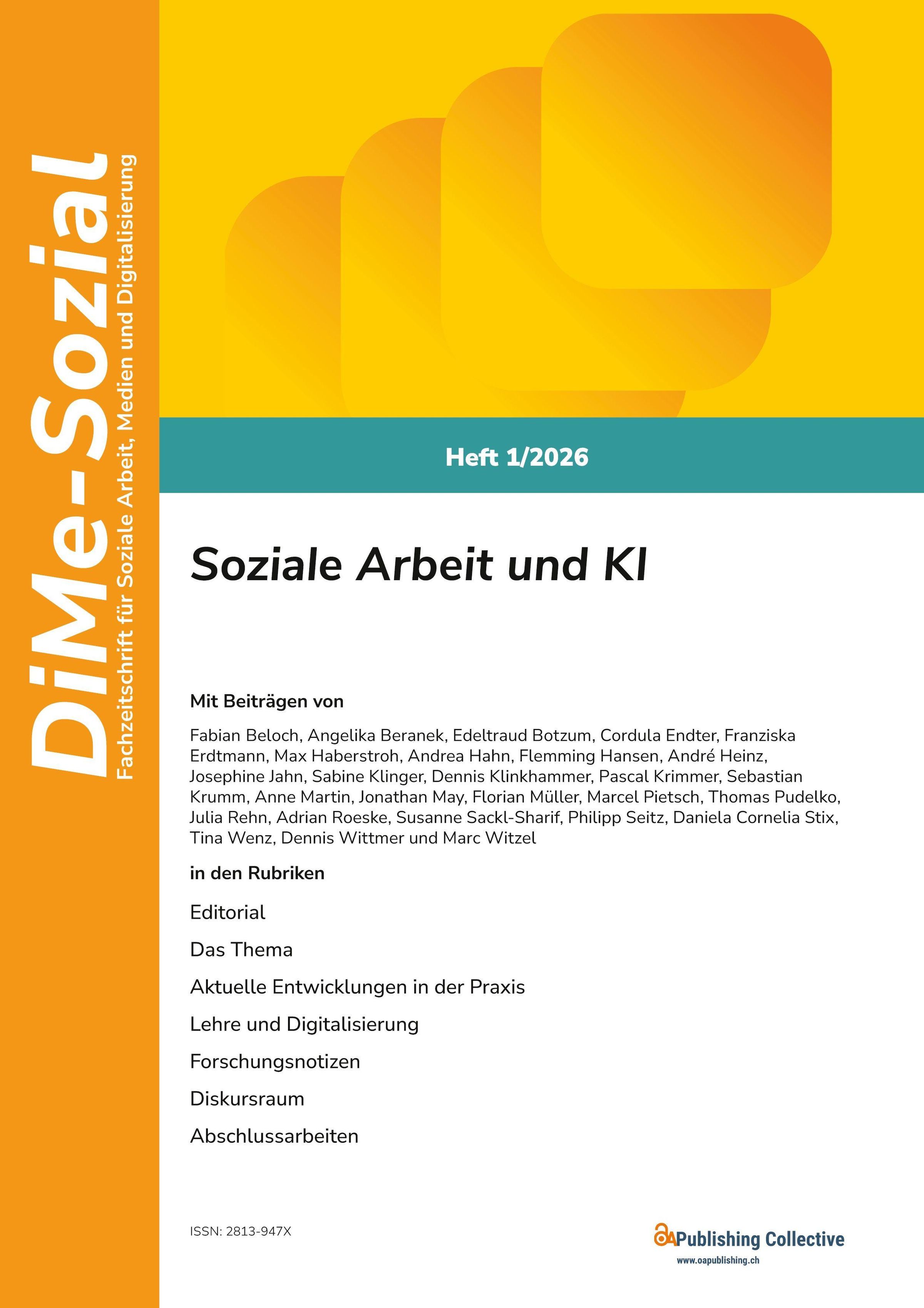 Der rasante Fortschritt Künstlicher Intelligenz verändert zunehmend auch die Soziale Arbeit. Algorithmische Systeme, Machine Learning oder generative KI finden bereits Anwendung in Beratung, Dokumentation, Lehre sowie in Entscheidungsprozessen etwa im Kinder- und Jugendschutz. Damit verbunden sind Fragen nach Chancen, Risiken und ethischen Herausforderungen: Wie beeinflussen algorithmische Systeme professionelle Entscheidungen? Welche neuen Wissensformen entstehen - und wo liegen ihre Grenzen? Zugleich rücken Macht-, Ungleichheits- und Diskriminierungsfragen in den Fokus, ebenso die Rolle professioneller Verantwortung im Zusammenspiel von Mensch und Technik. Das Heft 1 / 2026 der DiMe-Sozial widmet sich dem Verhältnis von KI und Sozialer Arbeit aus theoretischer, empirischer und professionstheoretischer Perspektive. Ziel ist es, über einfache Gegenüberstellungen von Potenzialen und Risiken hinauszugehen und fundierte Positionen für Forschung, Praxis und Ausbildung zu entwickeln. Beiträge diskutieren Grundlagenfragen, professionelle Handlungsmöglichkeiten, empirische Befunde sowie interdisziplinäre Perspektiven an der Schnittstelle von Sozialer Arbeit, Informatik und Data Science.