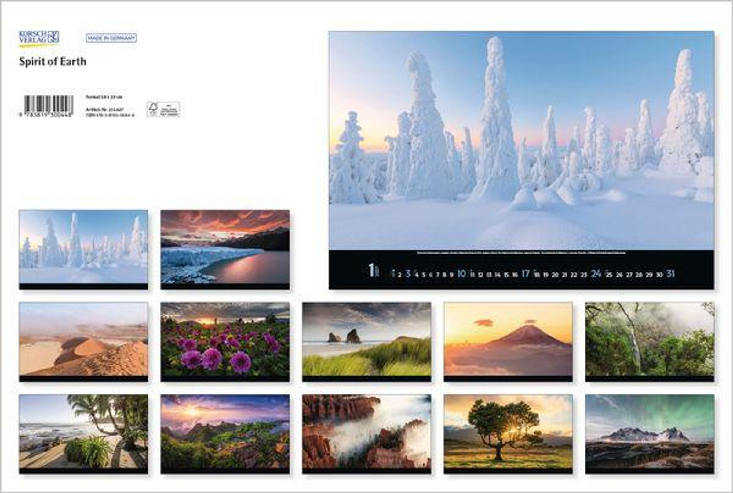 Der Geist der Erde: so tiefgründig und vielfältig wie ihre Landschaften. Der Kalender "Spirit of Earth" fängt das Wesen unseres Planeten in spektakulären Panoramafotografien gekonnt ein. Ein Wandschmuck der Superlative für alle Naturliebhaber.