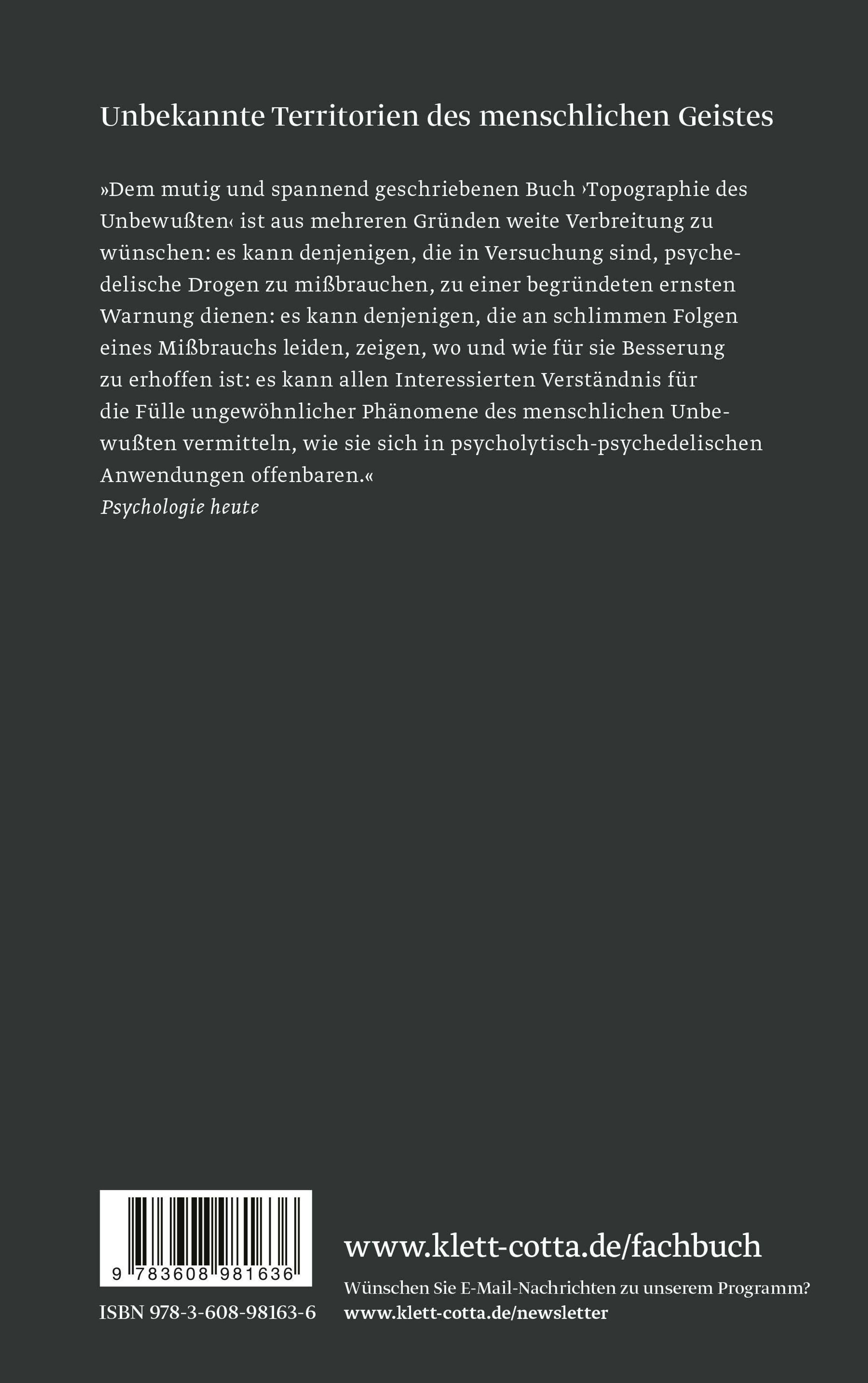 LSD und einige andere psychedelische Drogen sind ein einzigartiges Werkzeug tiefenpsychologischer Diagnostik und Forschung, da sie geistig-seelische Phänomene und Prozesse ans Licht bringen, die sonst kaum zugänglich wären. Es ist keine Übertreibung, die Bedeutung von LSD für Psychotherapie und Psychologie mit der des Mikroskops in der Medizin zu vergleichen.