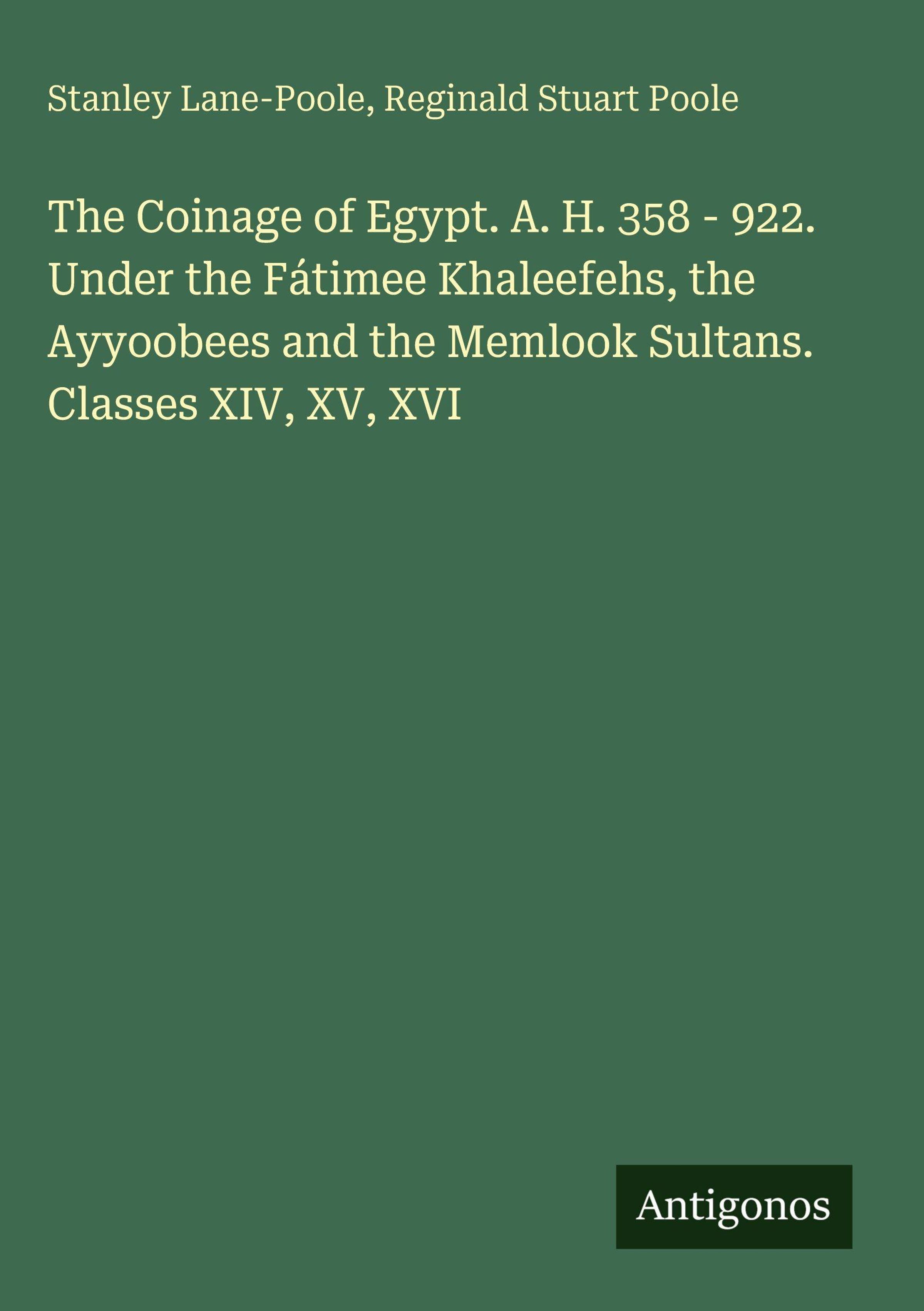 Stanley Lane-Poole: The Coinage of Egypt. A. H. 358 - 922. Under the Fátimee Khaleefehs, the Ayyoobees and the..., Gebunden