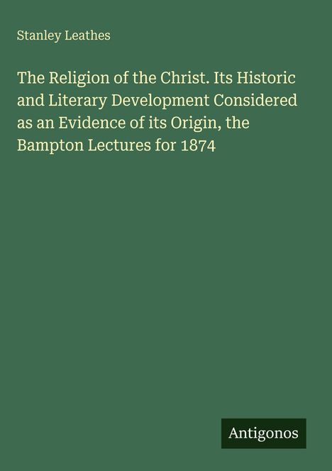 The Religion of the Christ. Its Historic and Literary Development Considered as an Evidence of its Origin, the Bampton Lectures for 1874