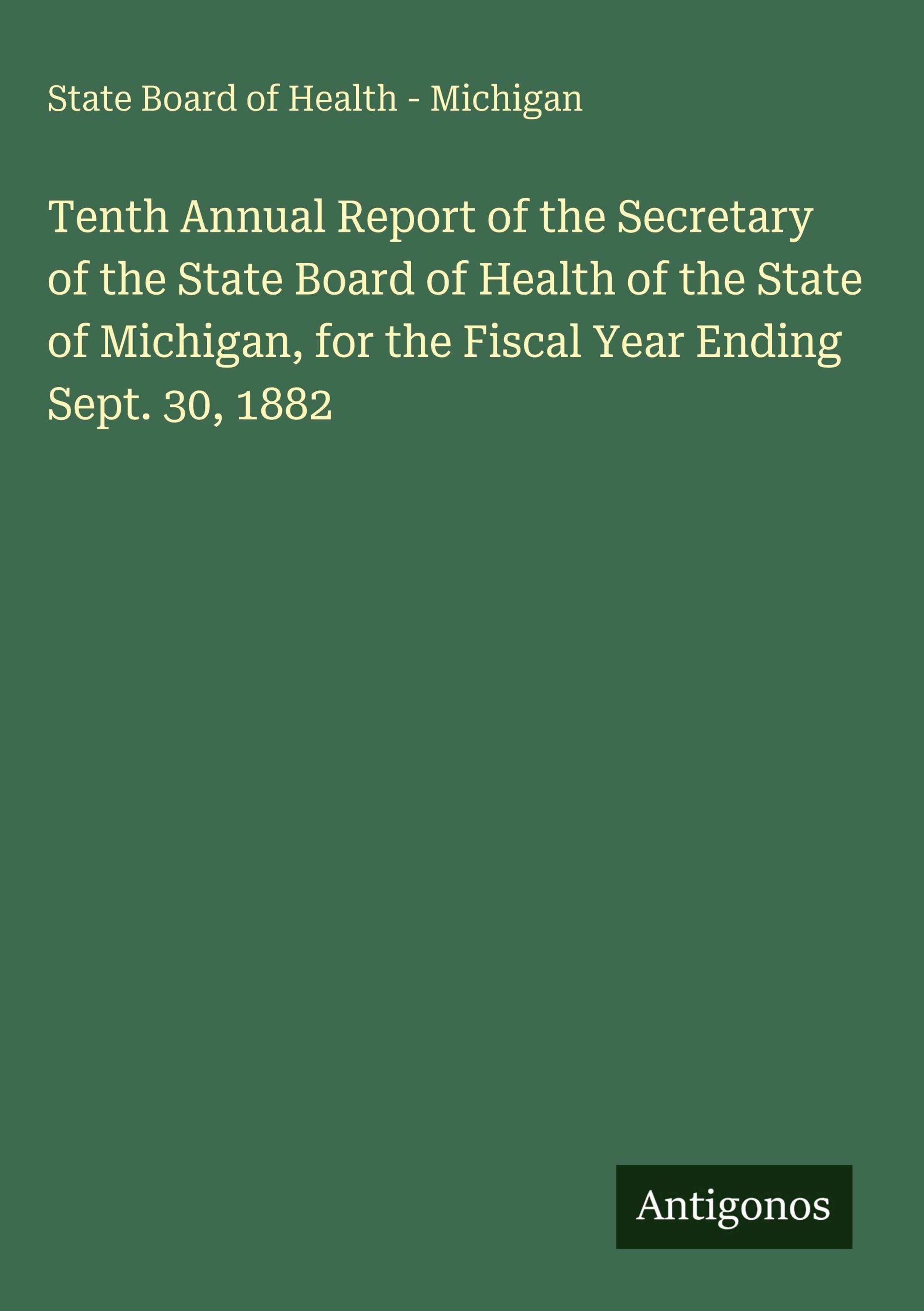 Tenth Annual Report of the Secretary of the State Board of Health of the State of Michigan, for the Fiscal Year Ending Sept. 30, 1882