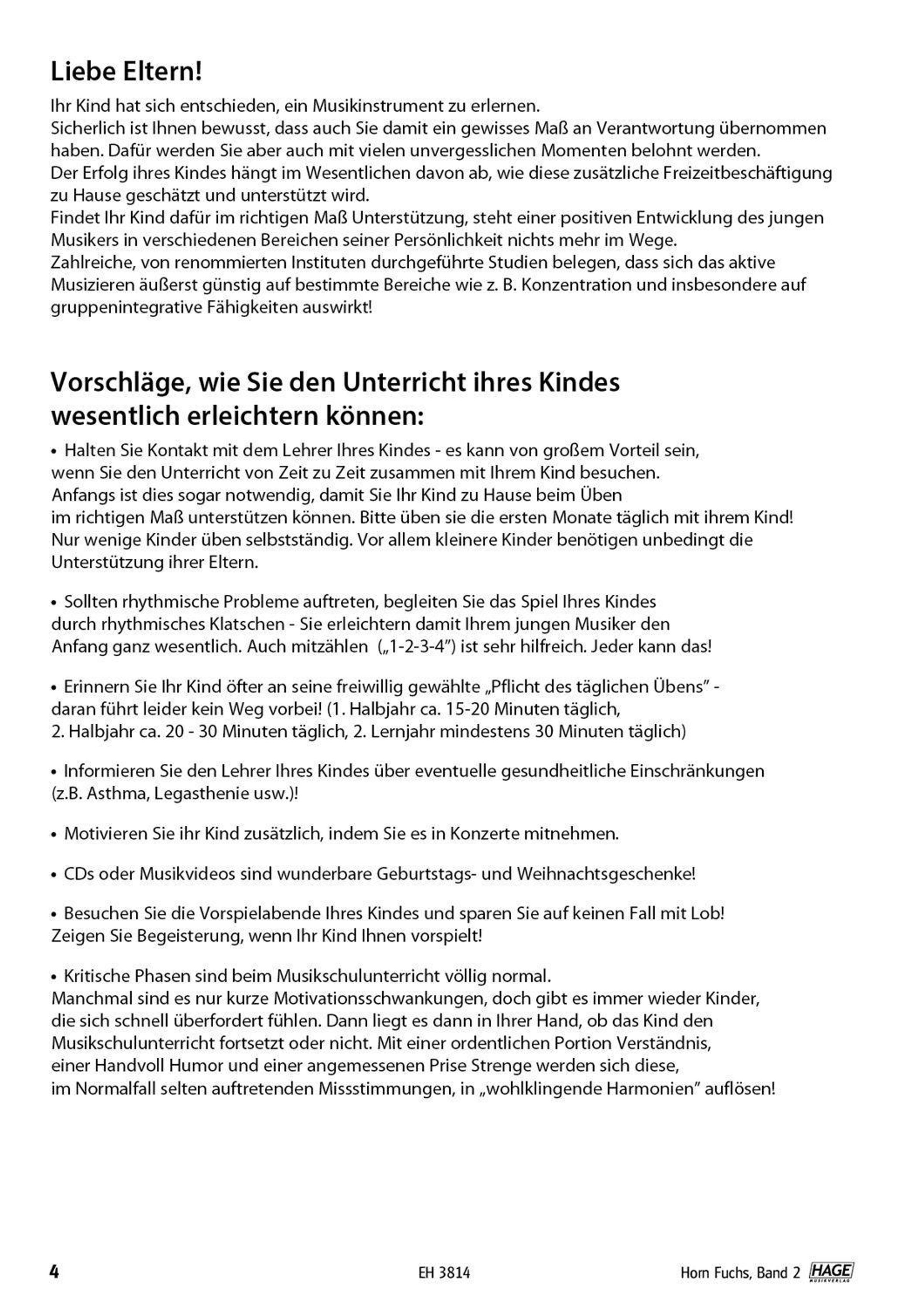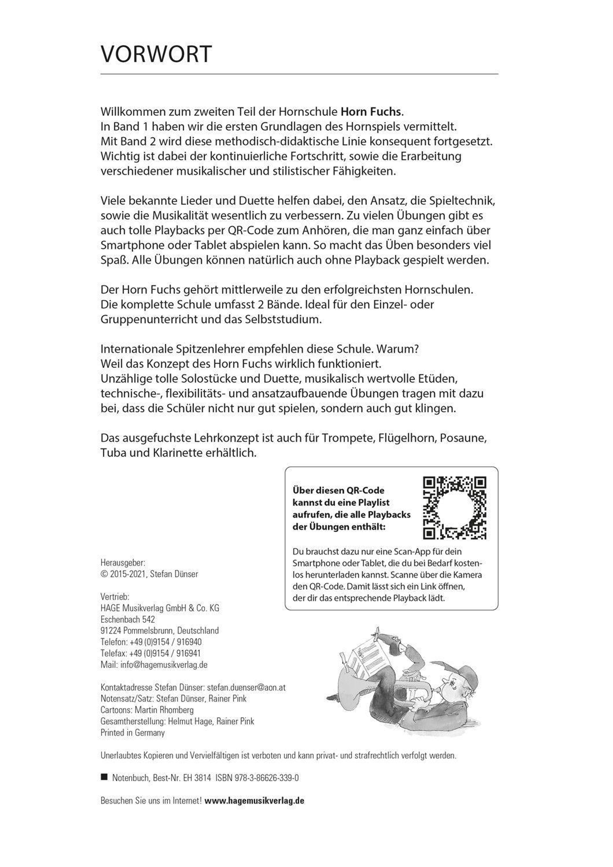 Willkommen zum zweiten Teil der Hornschule Horn Fuchs. In Band 1 haben wir die ersten Grundlagen des Hornspiels vermittelt. Mit Band 2 wird diese methodisch-didaktische Linie konsequent fortgesetzt. Wichtig ist dabei der kontinuierliche Fortschritt, sowie die Erarbeitung verschiedener musikalischer und stilistischer Fähigkeiten.
