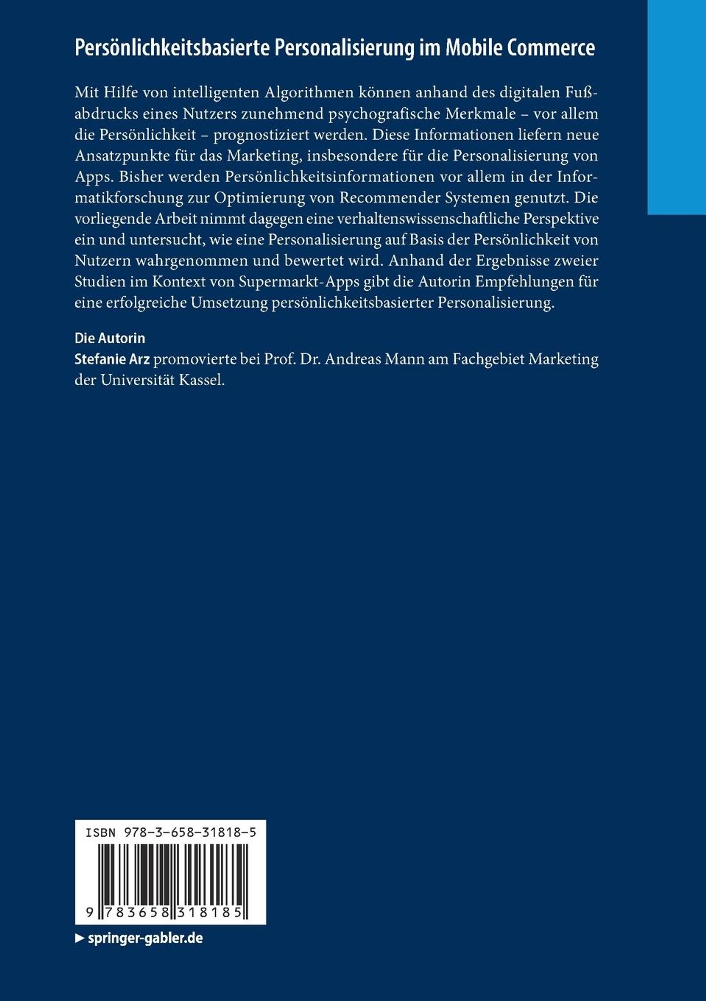Mit Hilfe von intelligenten Algorithmen können anhand des digitalen Fußabdrucks eines Nutzers zunehmend psychografische Merkmale ¿ vor allem die Persönlichkeit ¿ prognostiziert werden. Diese Informationen liefern neue Ansatzpunkte für das Marketing, insbesondere für die Personalisierung von Apps. Bisher werden Persönlichkeitsinformationen vor allem in der Informatikforschung zur Optimierung von Recommender Systemen genutzt. Die vorliegende Arbeit nimmt dagegen eine verhaltenswissenschaftliche Perspektive ein und untersucht, wie eine Personalisierung auf Basis der Persönlichkeit von Nutzern wahrgenommen und bewertet wird. Anhand der Ergebnisse zweier Studien im Kontext von Supermarkt-Apps gibt die Autorin Empfehlungen für eine erfolgreiche Umsetzung persönlichkeitsbasierter Personalisierung.