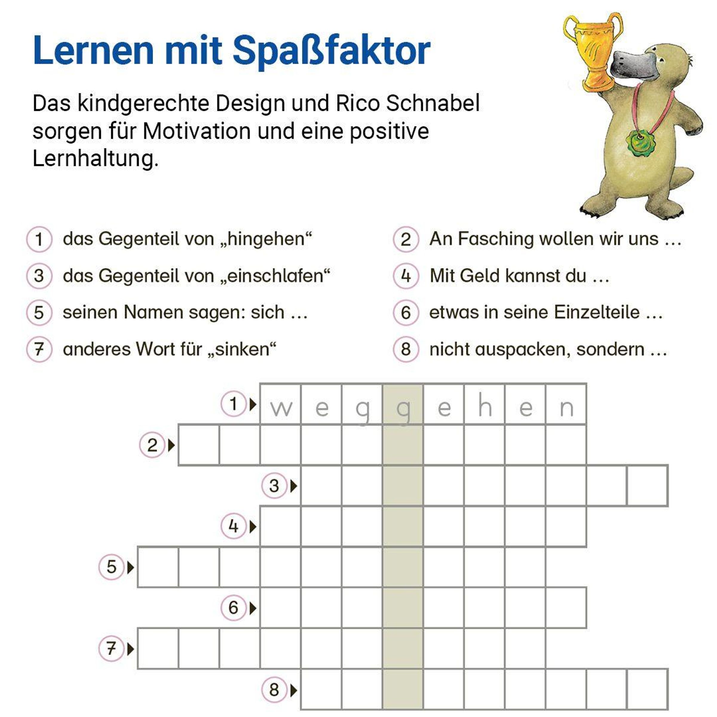 Darüber hinaus werden in allen Themenbereichen des Hefts die Wörter der verbindlichen Grundwortschätze geübt, sodass ebenfalls ein Rechtschreib- und Grundwortschatztraining erfolgt.