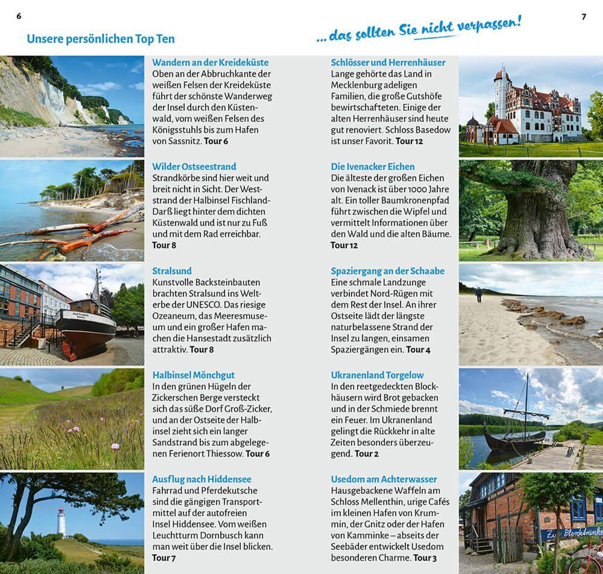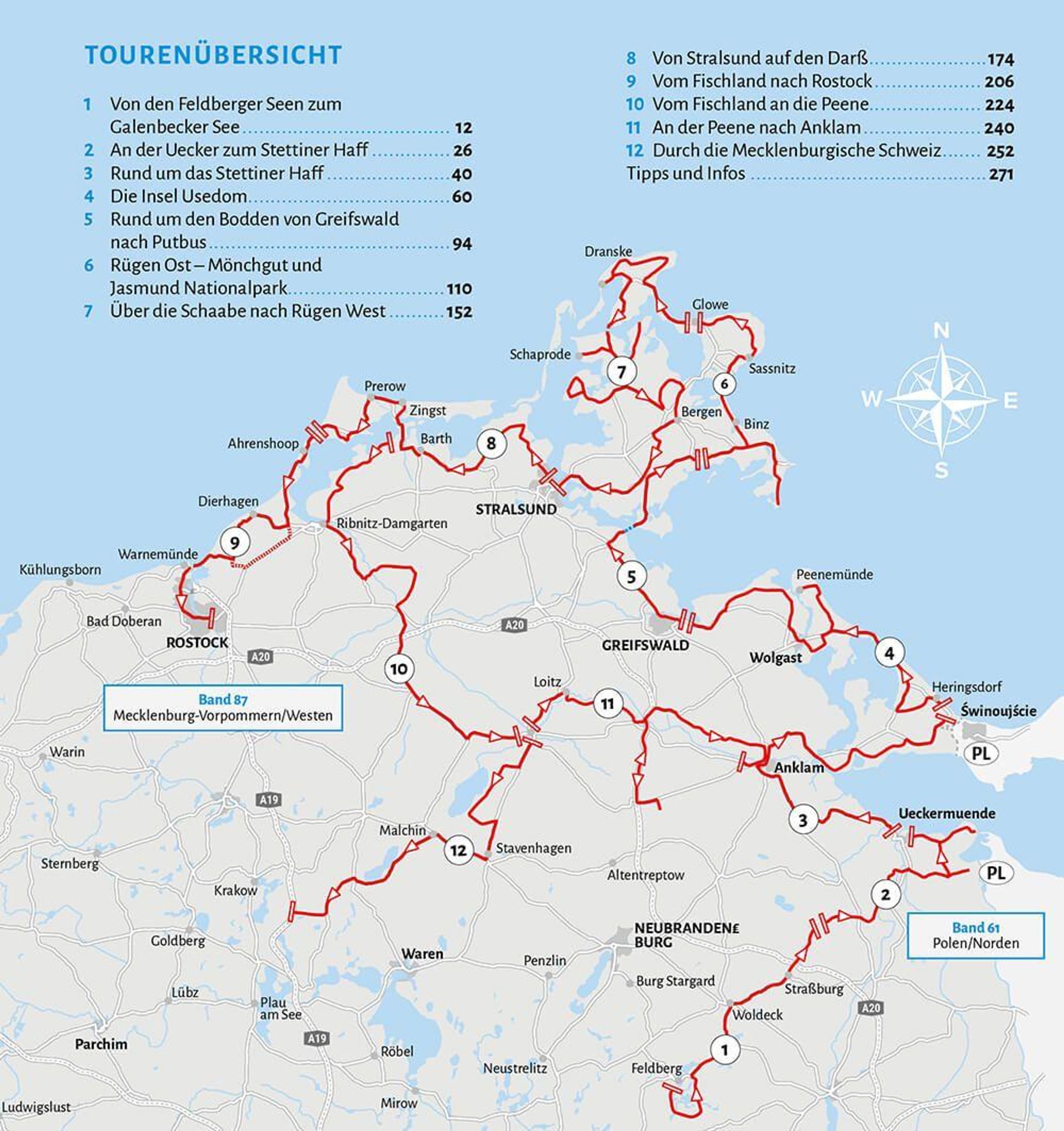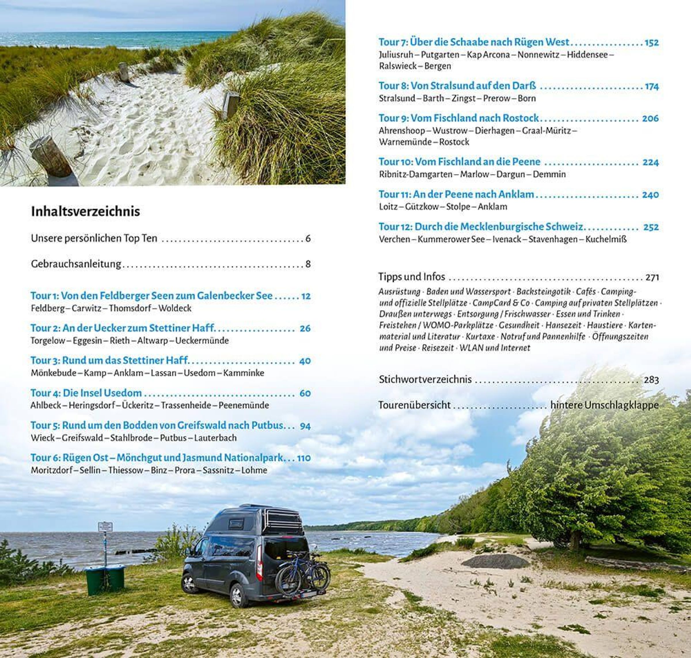 Lange Sandstrände, schicke Badeorte mit bildhübschen alten Villen in verschnörkelter Bäderarchitektur und eindrucksvolle Seebrücken, würdige alte Hansestädte mit kunstvoll gestalteten roten Backsteinbauten, uralte Baumgiganten und die spektakuläre Kreideküste - Vorpommern ist ein abwechslungsreiches Reiseziel mit vielen Höhepunkten. Die schönsten Routen zur Ostseeküste, über die Inseln Usedom und Rügen, auf Fischland-Darß und an der Küste entlang Wertvolle Insidertipps: Sehenswürdigkeiten, tolle Wanderungen, die schönsten Badeplätze, Kultur und Geschichte Über 180 Übernachtungs- und Campingplätze mit detaillierten Beschreibungen und Anfahrtswegen