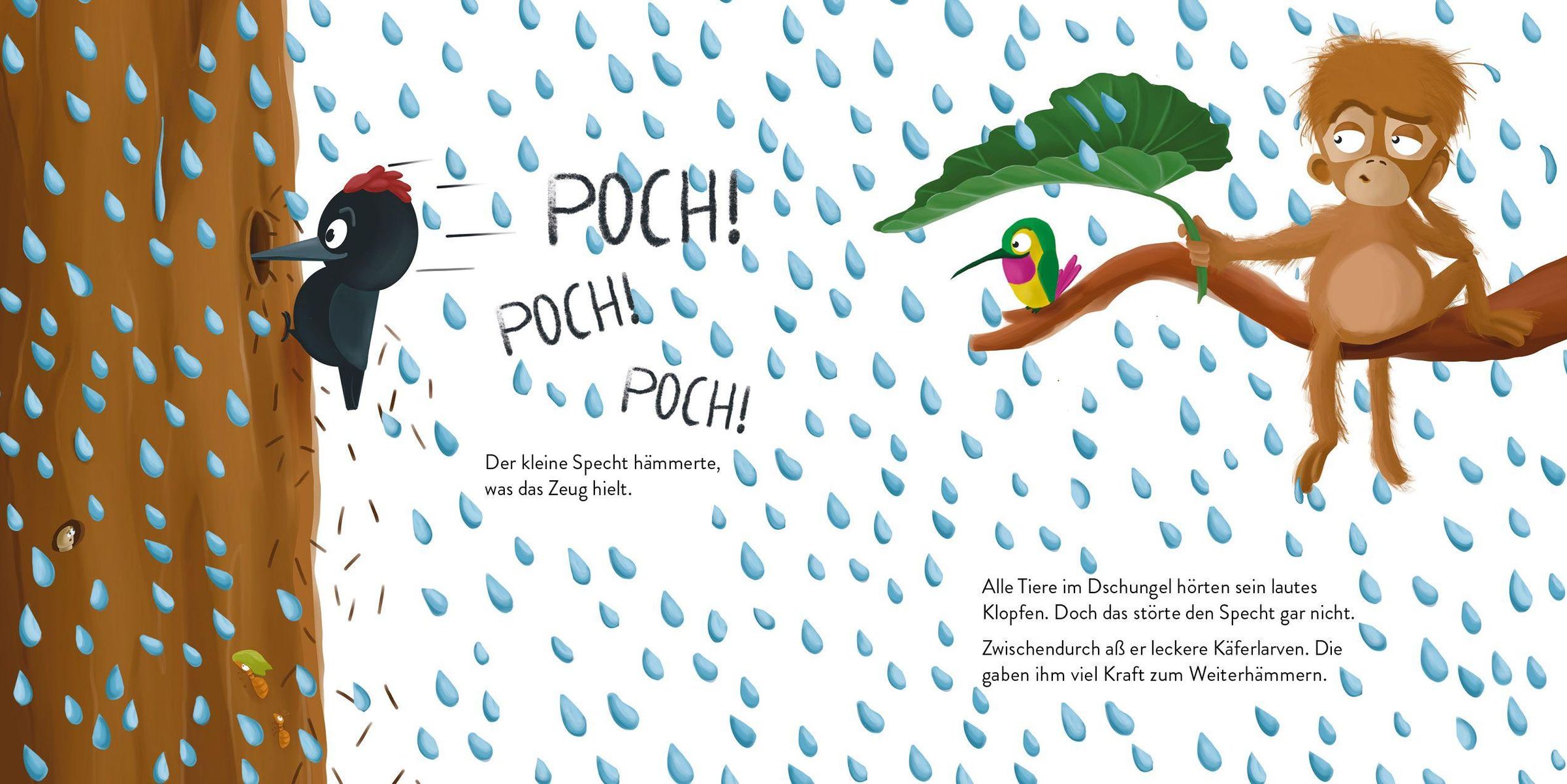 Tief im großen Dschungel träumt ein kleiner Specht davon, anders zu sein. So bunt und geschickt wie ein Papagei vielleicht - oder nein, noch besser: so schillernd und elegant wie ein Kolibri. Dann würden die anderen Tiere ihn bestimmt mögen und sich nicht mehr von ihm gestört fühlen. Doch seine Versuche, sich zu ändern, bringen ihm nur Spott ein und enden im Chaos. Bis es an einem Regentag zu einer besonderen Begegnung kommt und der kleine Specht erkennt, was in ihm steckt ...