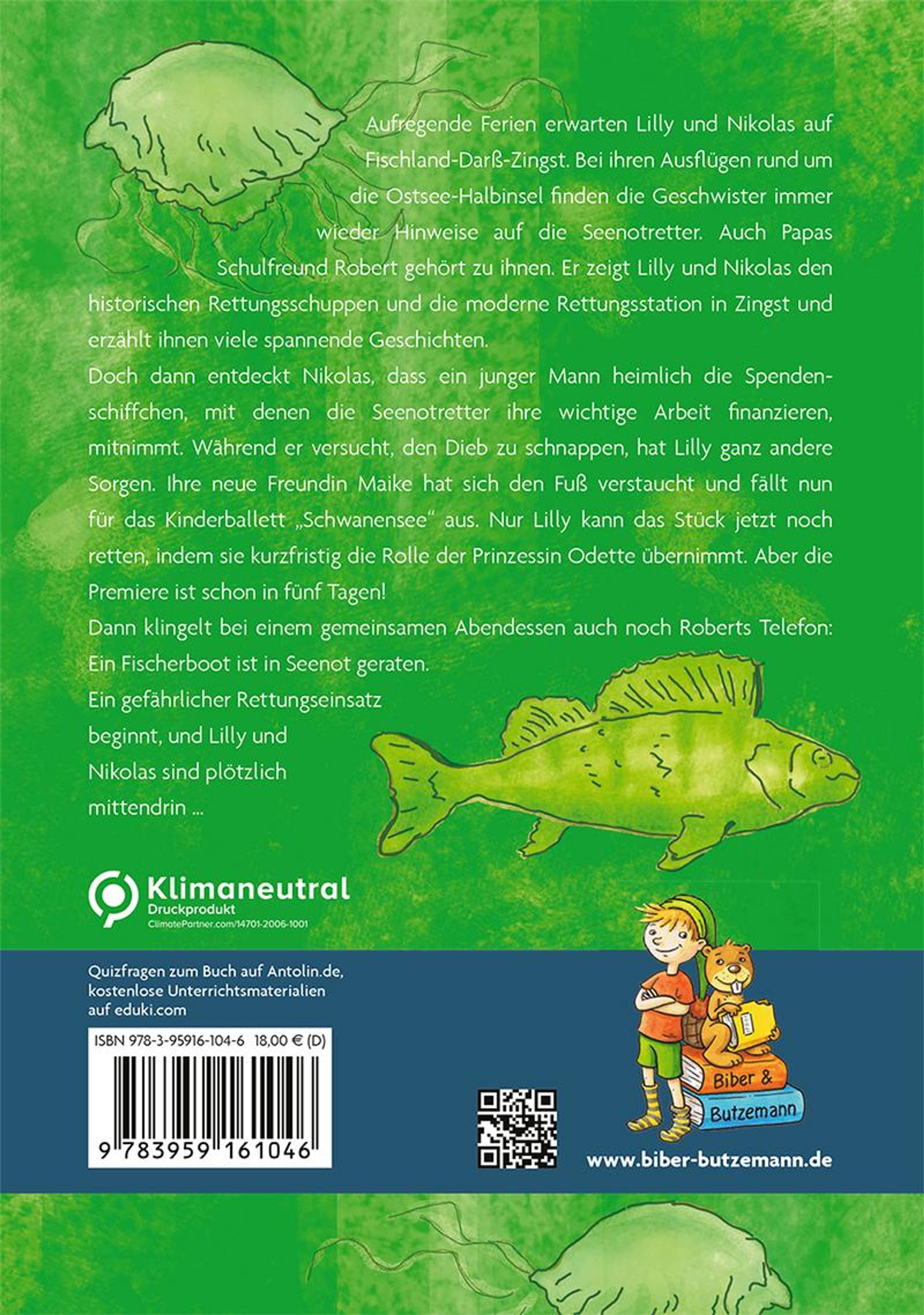 Aufregende Ferien erwarten Lilly und Nikolas auf Fischland-Darß-Zingst. Bei ihren Ausflügen rund um die Ostsee-Halbinsel finden die Geschwister immer wieder Hinweise auf die Seenotretter. Auch Papas Schulfreund Robert gehört zu ihnen. Er zeigt Lilly und Nikolas den historischen Rettungsschuppen und die moderne Rettungsstation in Zingst und erzählt ihnen viele spannende Geschichten. Doch dann entdeckt Nikolas, dass ein junger Mann heimlich die Spendenschiffchen, mit denen die Seenotretter ihre wichtige Arbeit finanzieren, mitnimmt. Während er versucht, den Dieb zu schnappen, hat Lilly ganz andere Sorgen. Ihre neue Freundin Maike hat sich den Fuß verstaucht und fällt nun für das Kinderballett "Schwanensee" aus. Nur Lilly kann das Stück jetzt noch retten, indem sie kurzfristig die Rolle der Prinzessin Odette übernimmt. Aber die Premiere ist schon in fünf Tagen! Dann klingelt bei einem gemeinsamen Abendessen auch noch Roberts Telefon: Ein Fischerboot ist in Seenot geraten und ein gefährlicher Rettungseinsatz beginnt. Und Lilly und Nikolas sind plötzlich mittendrin ...