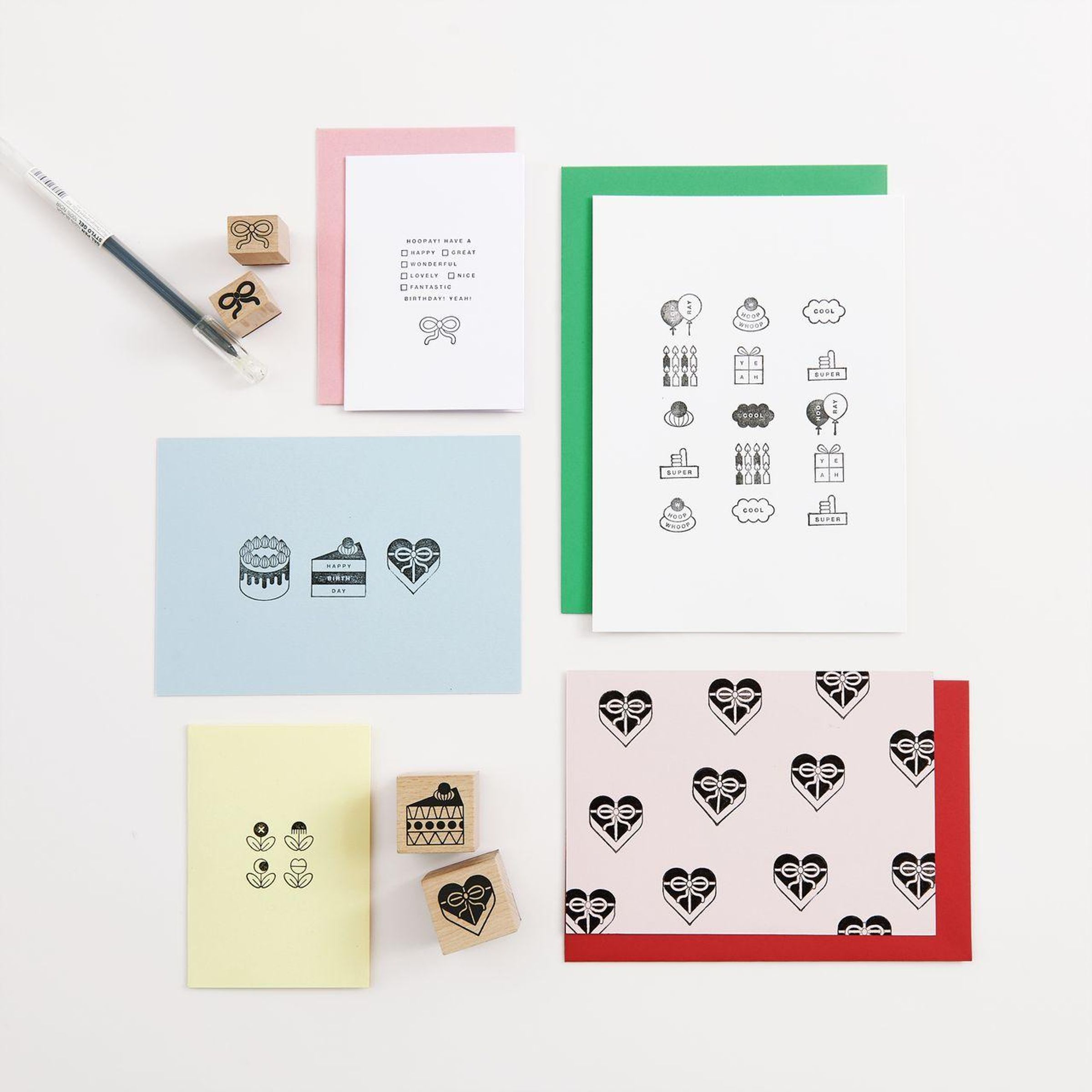 Das Stempelset umfasst 23 Stempel und ein schwarzes Stempelkissen für individuelle Papierarbeiten. Die kompakte Größe von 8 × 16 cm erleichtert die Aufbewahrung und den Einsatz zu Hause oder unterwegs. Die Zusammenstellung eignet sich zum Personalisieren von Karten, Geschenkanhängern und Notizen.