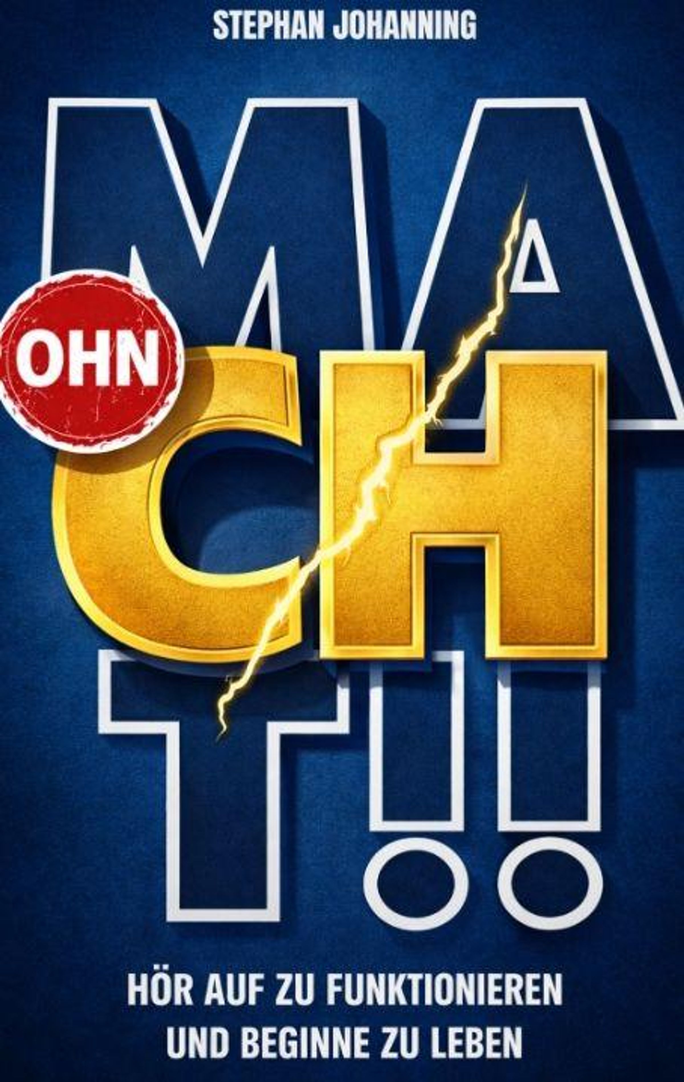 Text: "Stephan Johanning. M A CH T! Hör auf zu funktionieren und beginne zu leben." Illustration mit Blitz durch Buchstaben., Buch